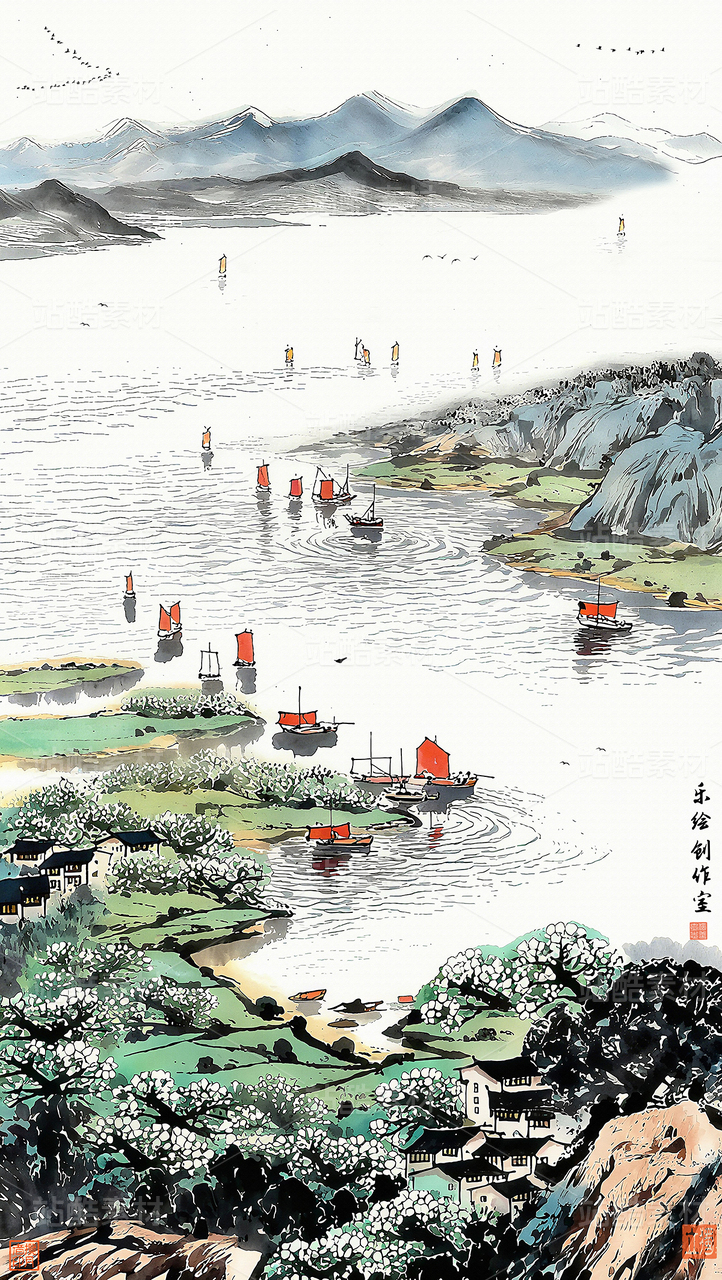 江山如画意境山水背景