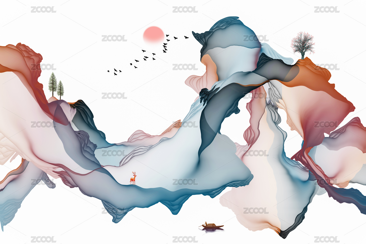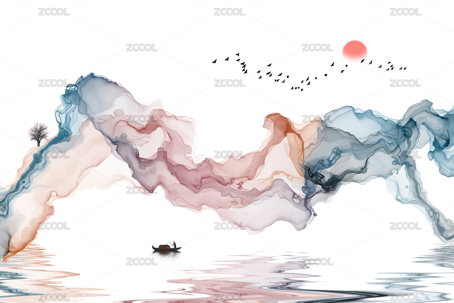 抽象水墨画唯美意境山水画