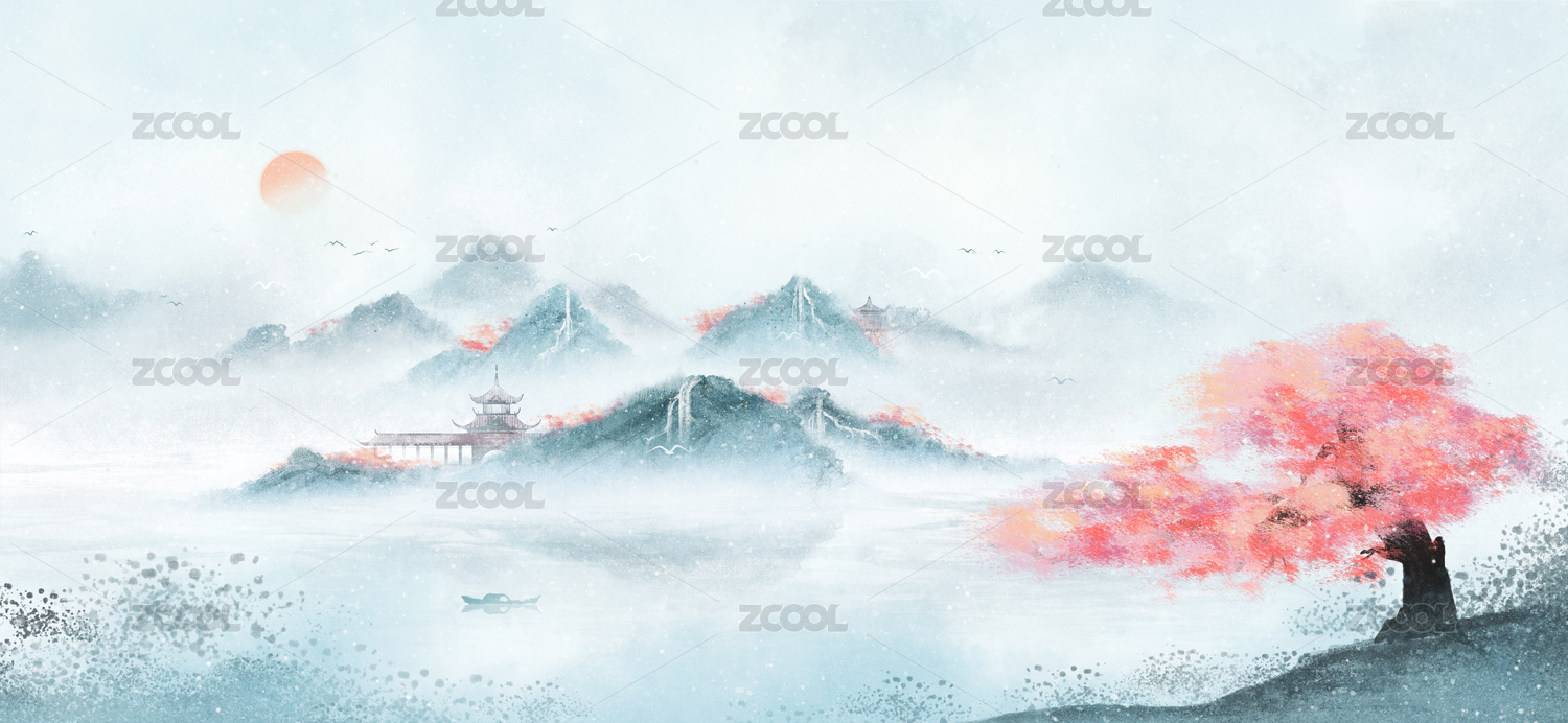 意境山水装饰画背景