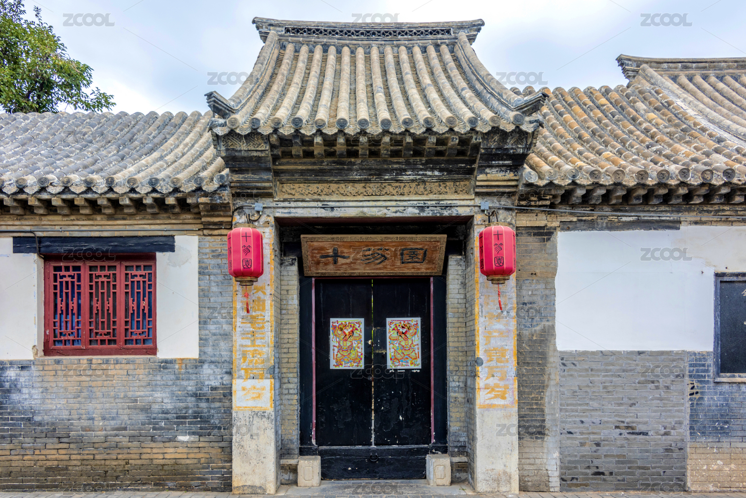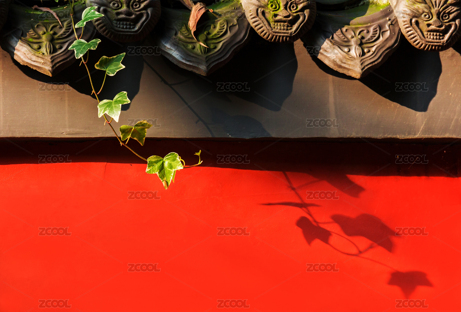 成都杜甫草堂花径红墙黑瓦神兽雕刻