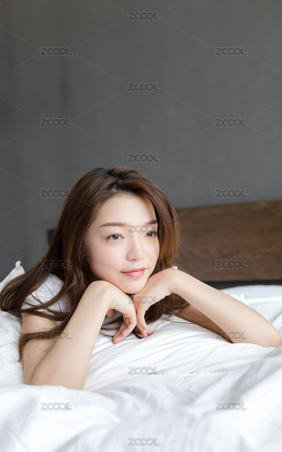 卧室里一名年轻女性趴在床上休息