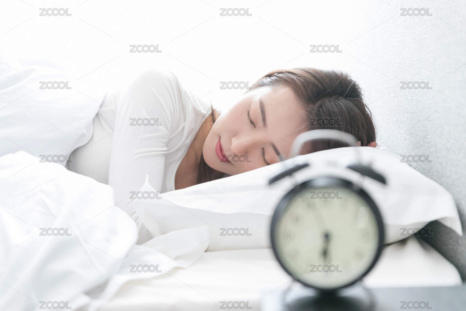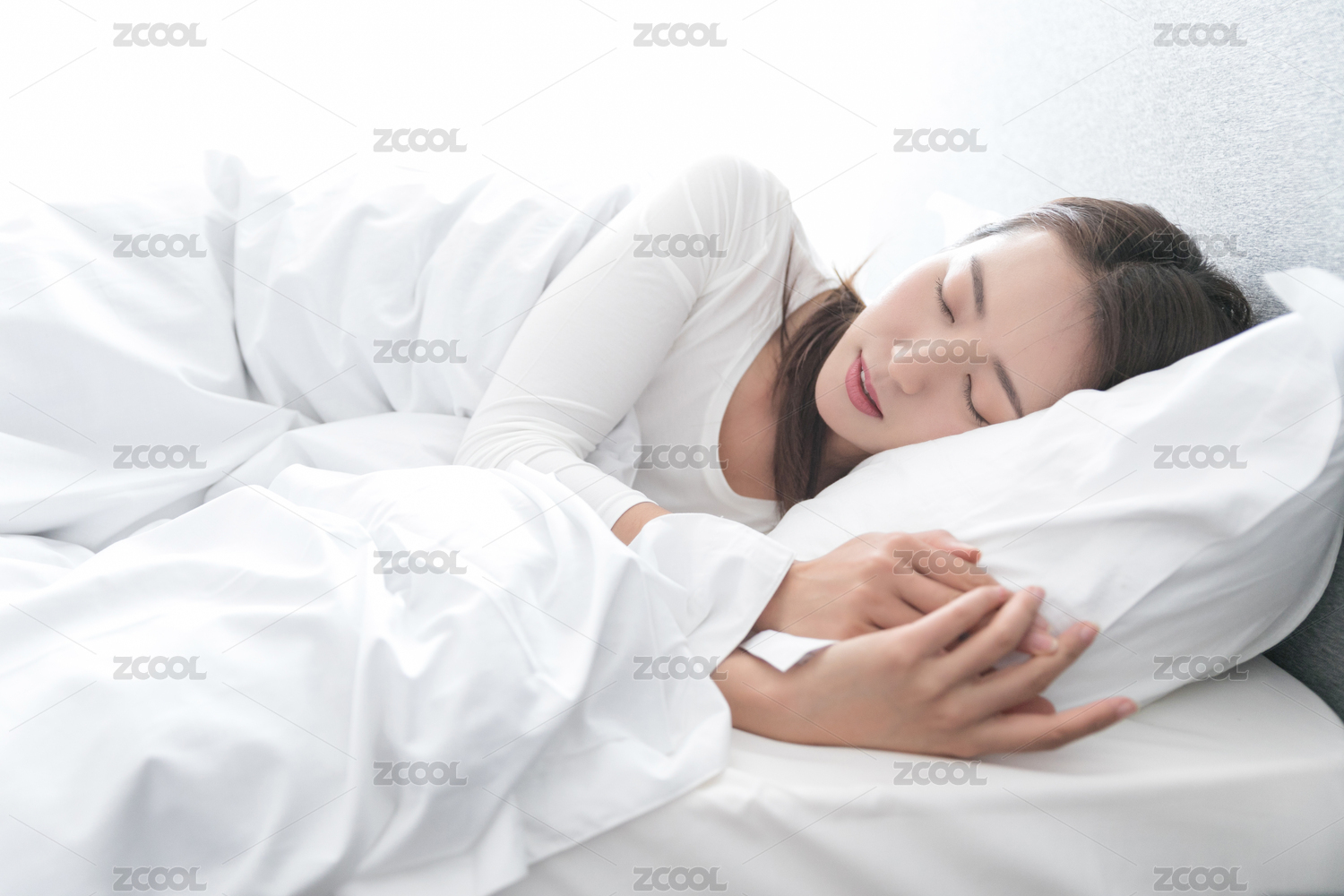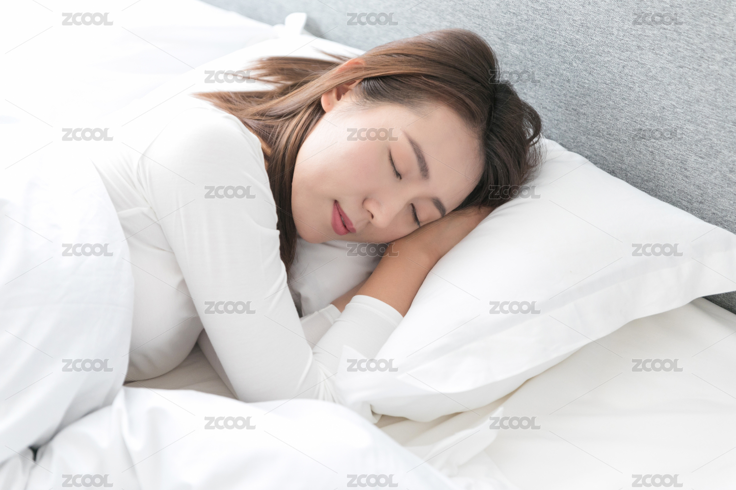 一名年轻女性在床上睡觉休息
