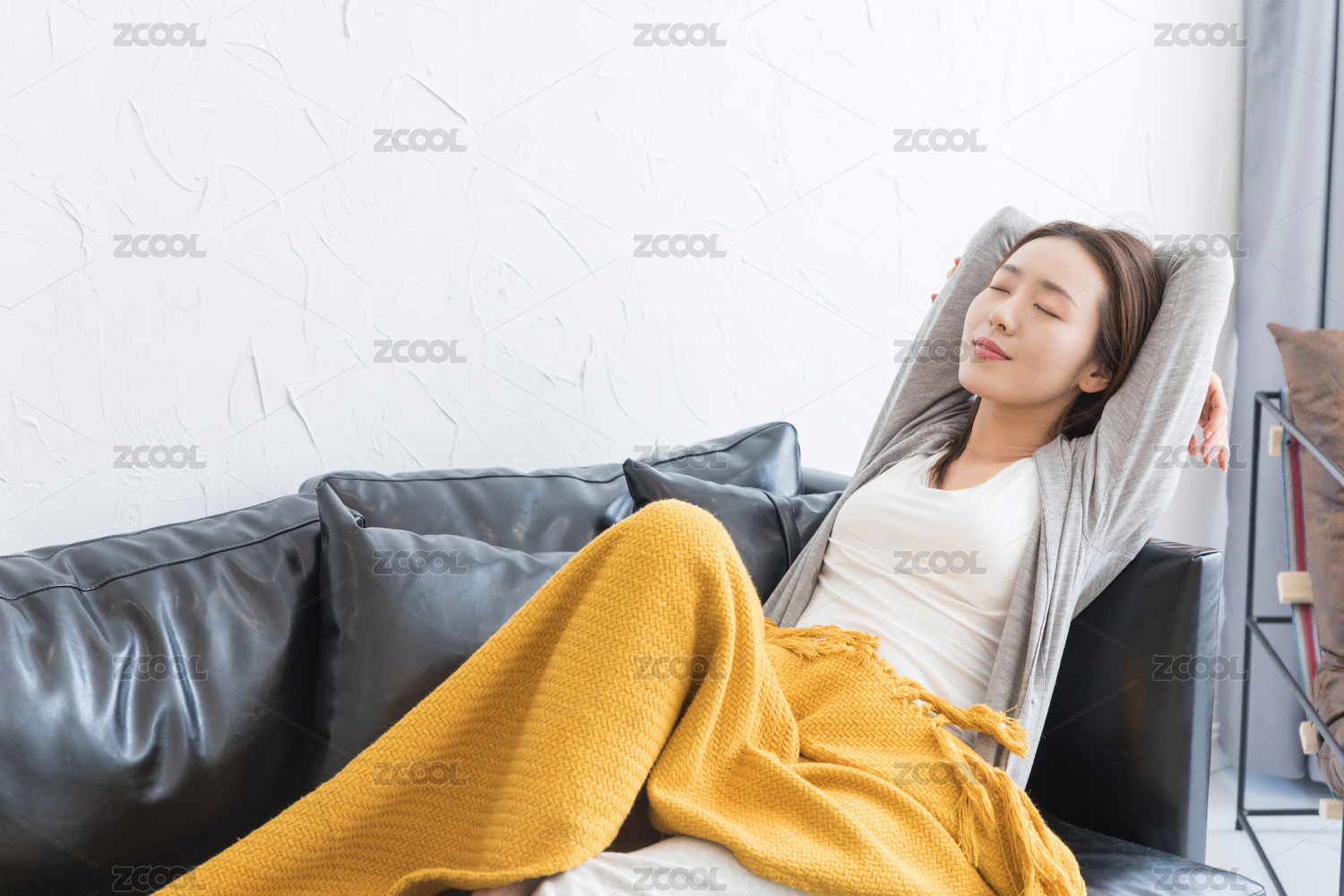 一名年轻女性躺在沙发上休息
