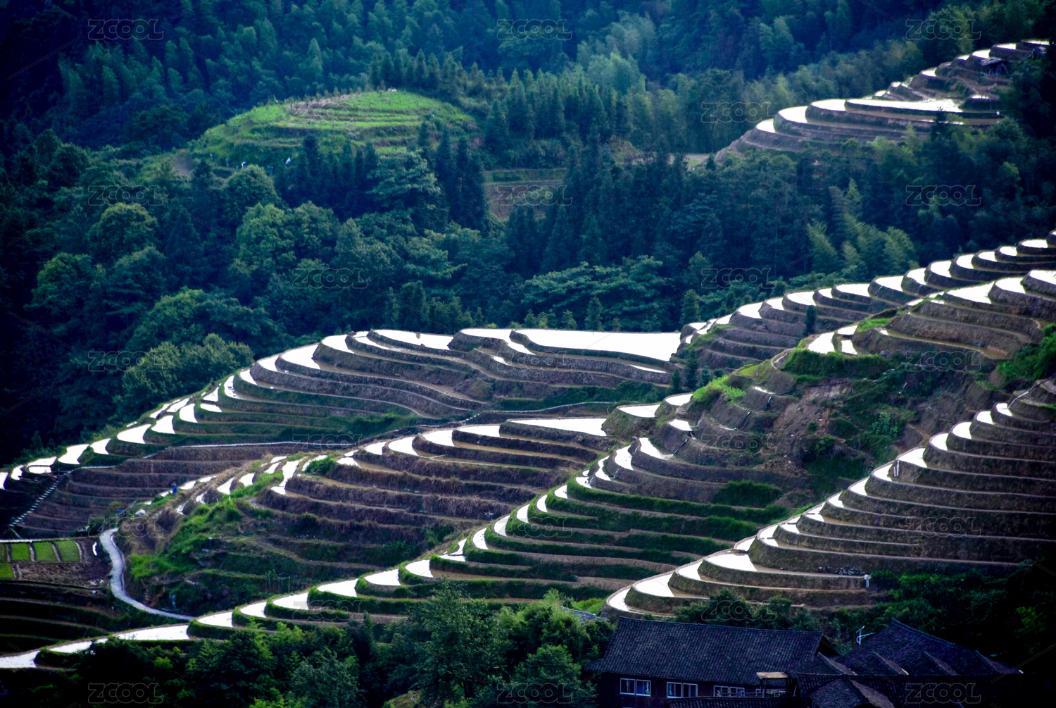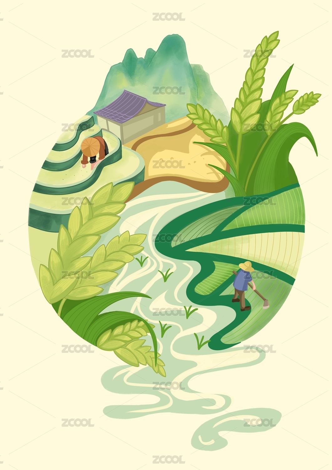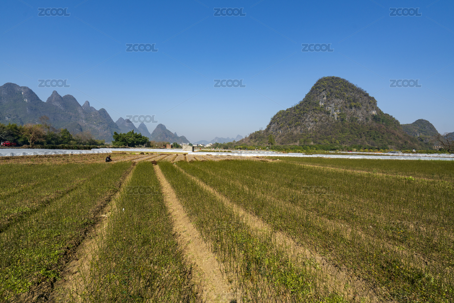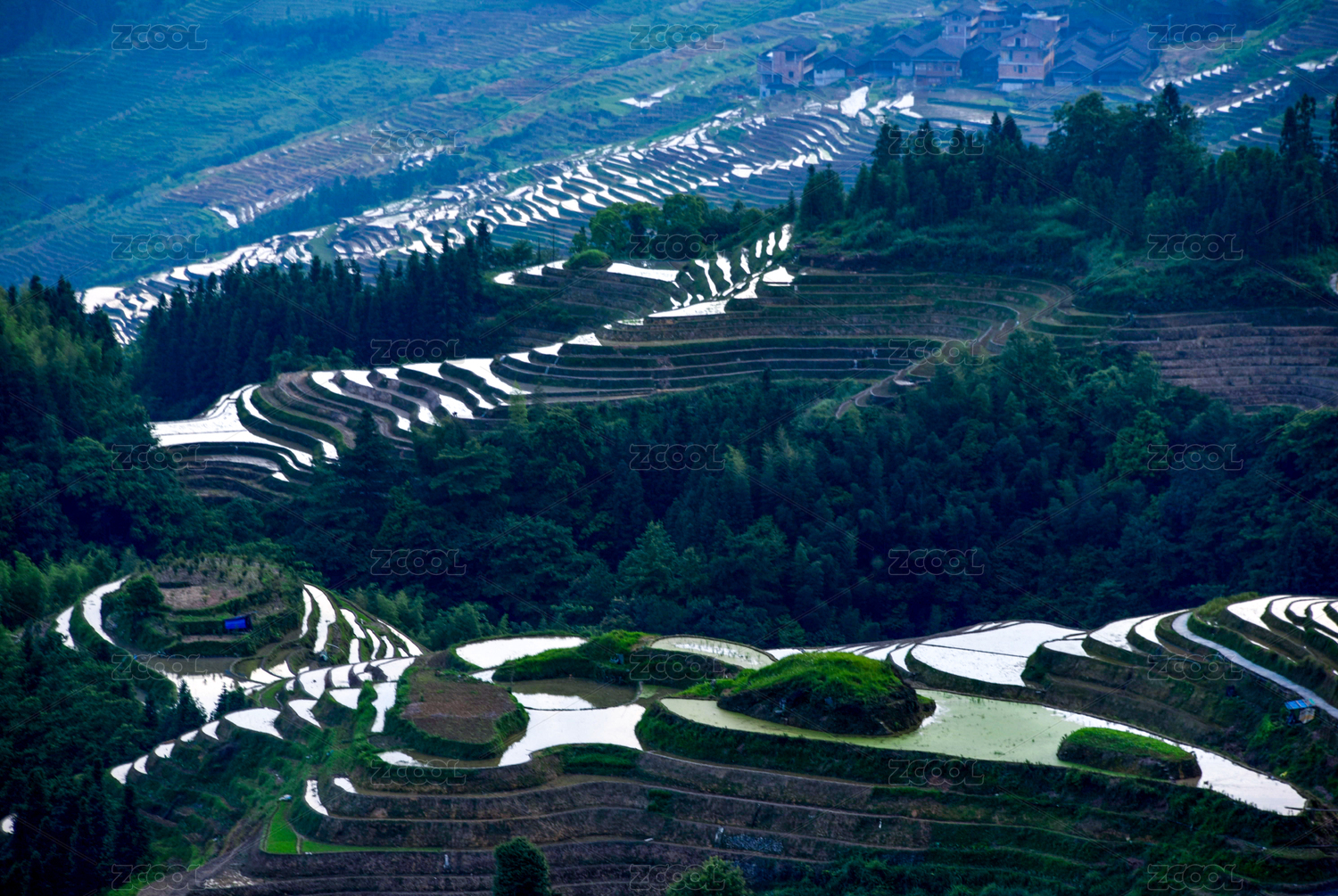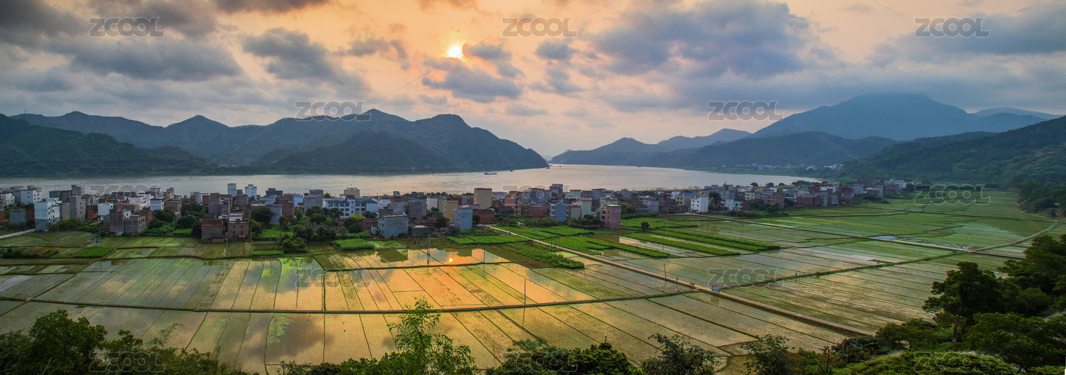 广东珠海斗门区莲洲镇春耕的稻田黄昏景象