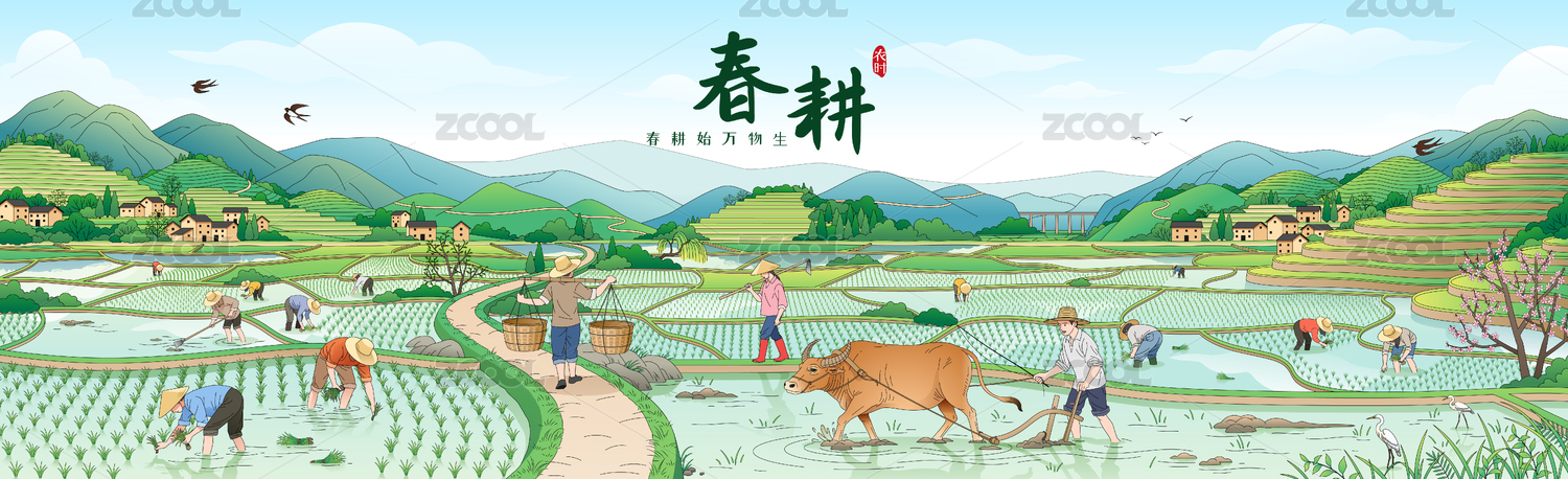 立春耕田的人和牛古装农民爷爷拿着鞭子赶