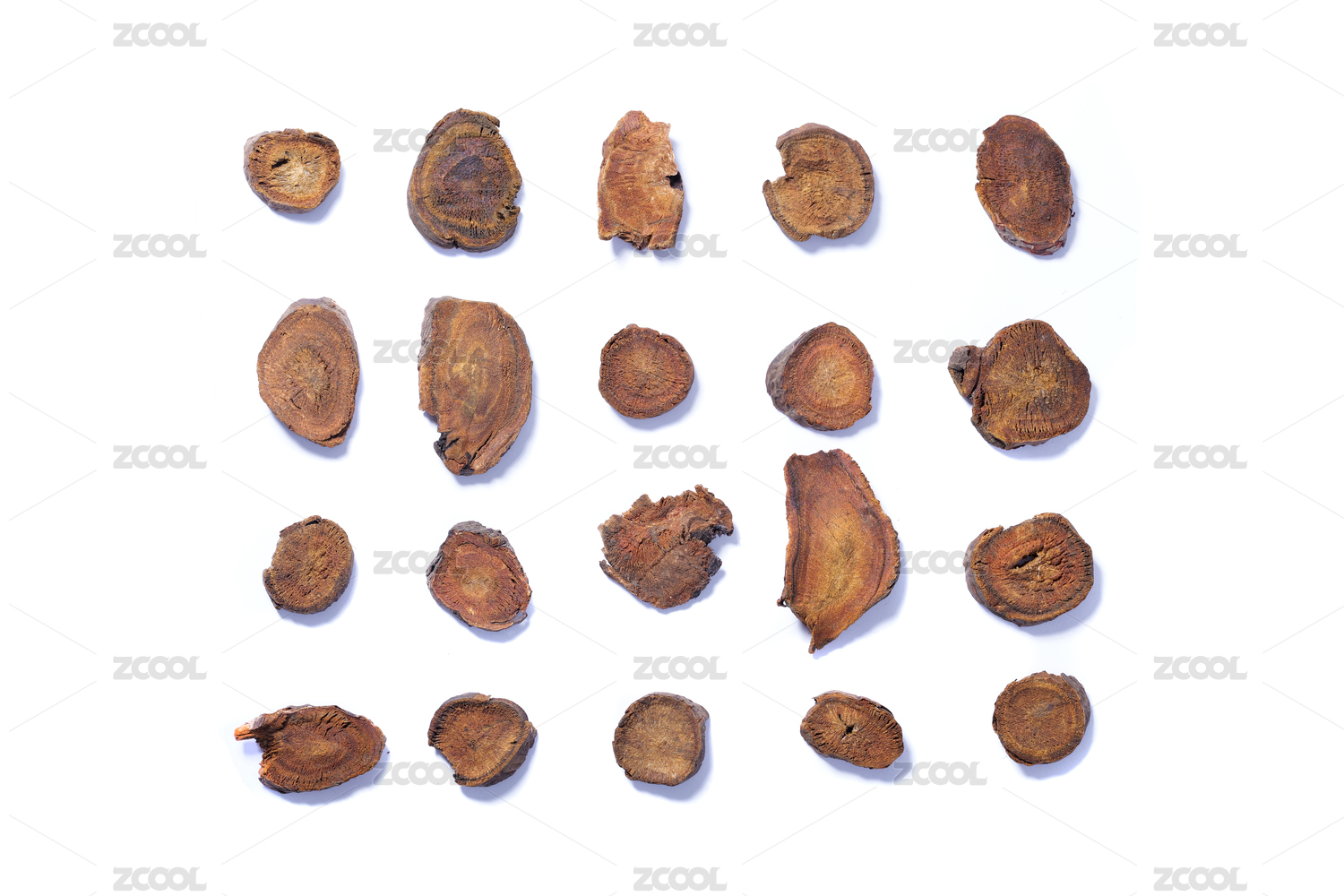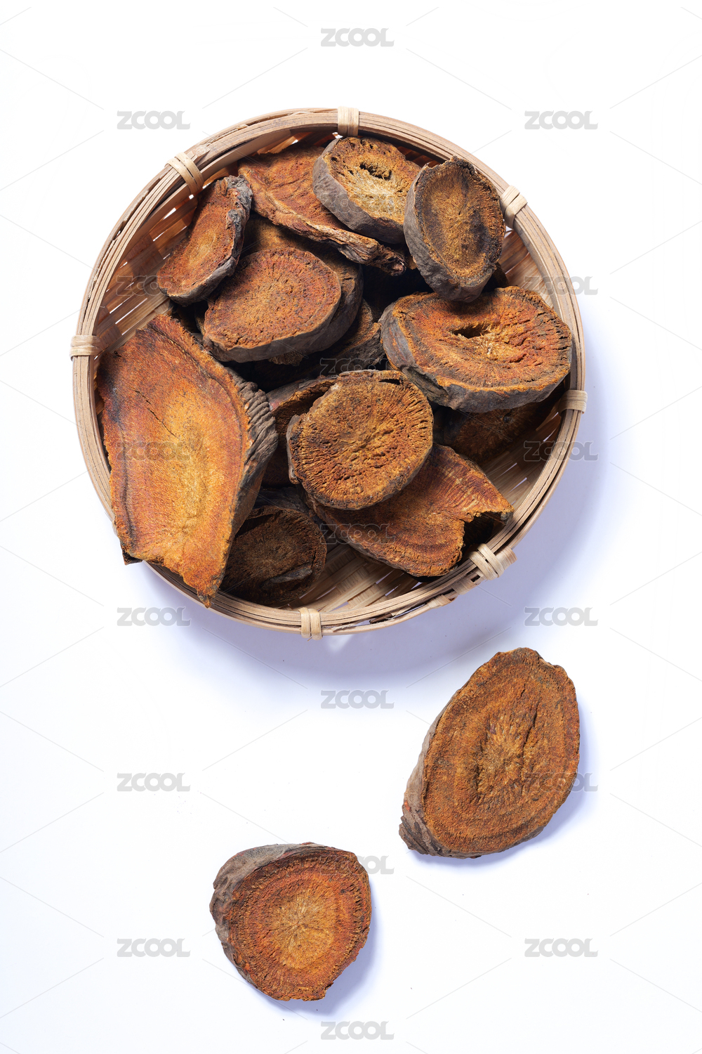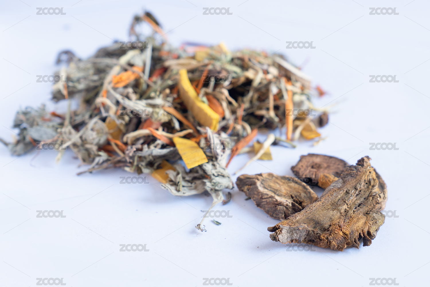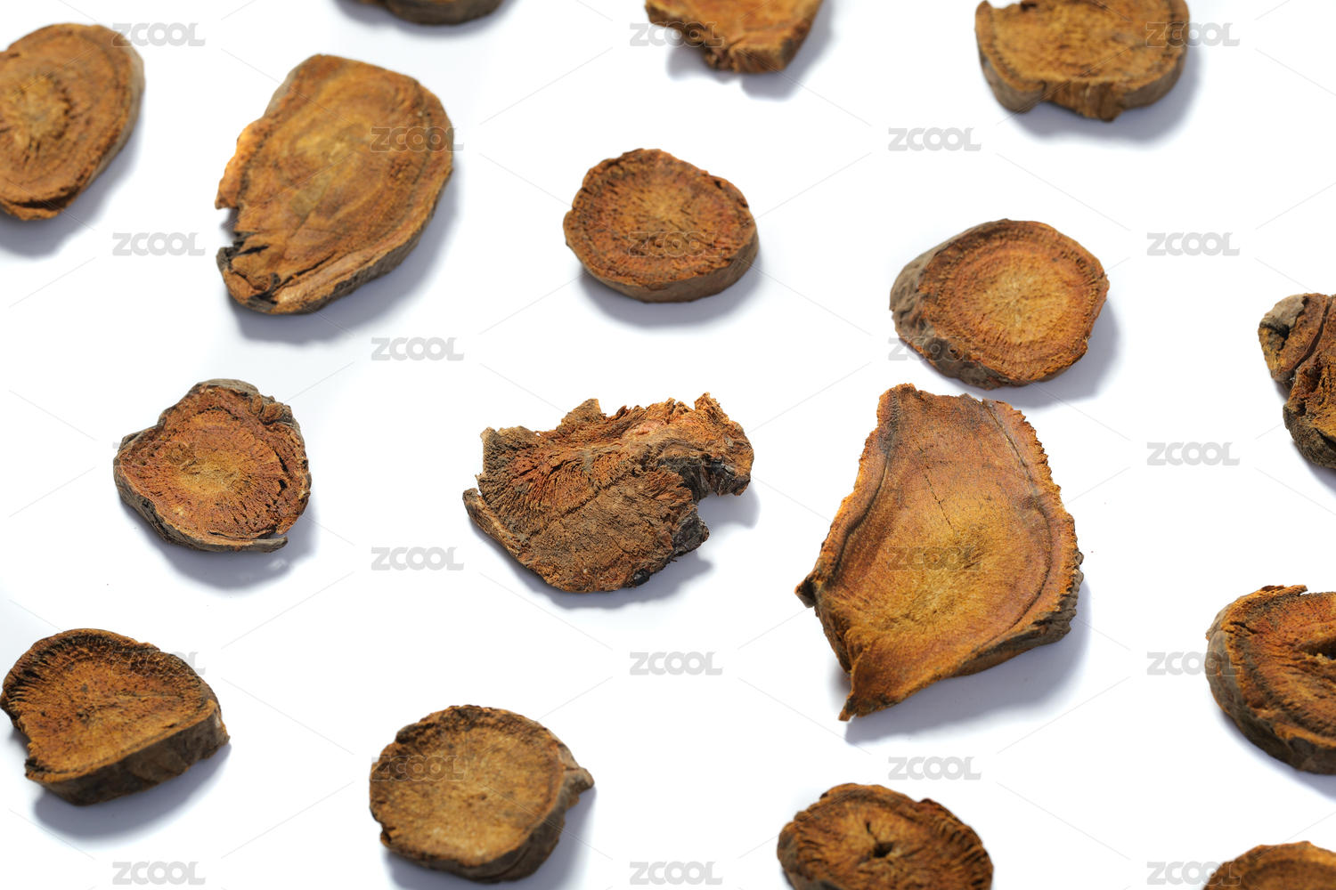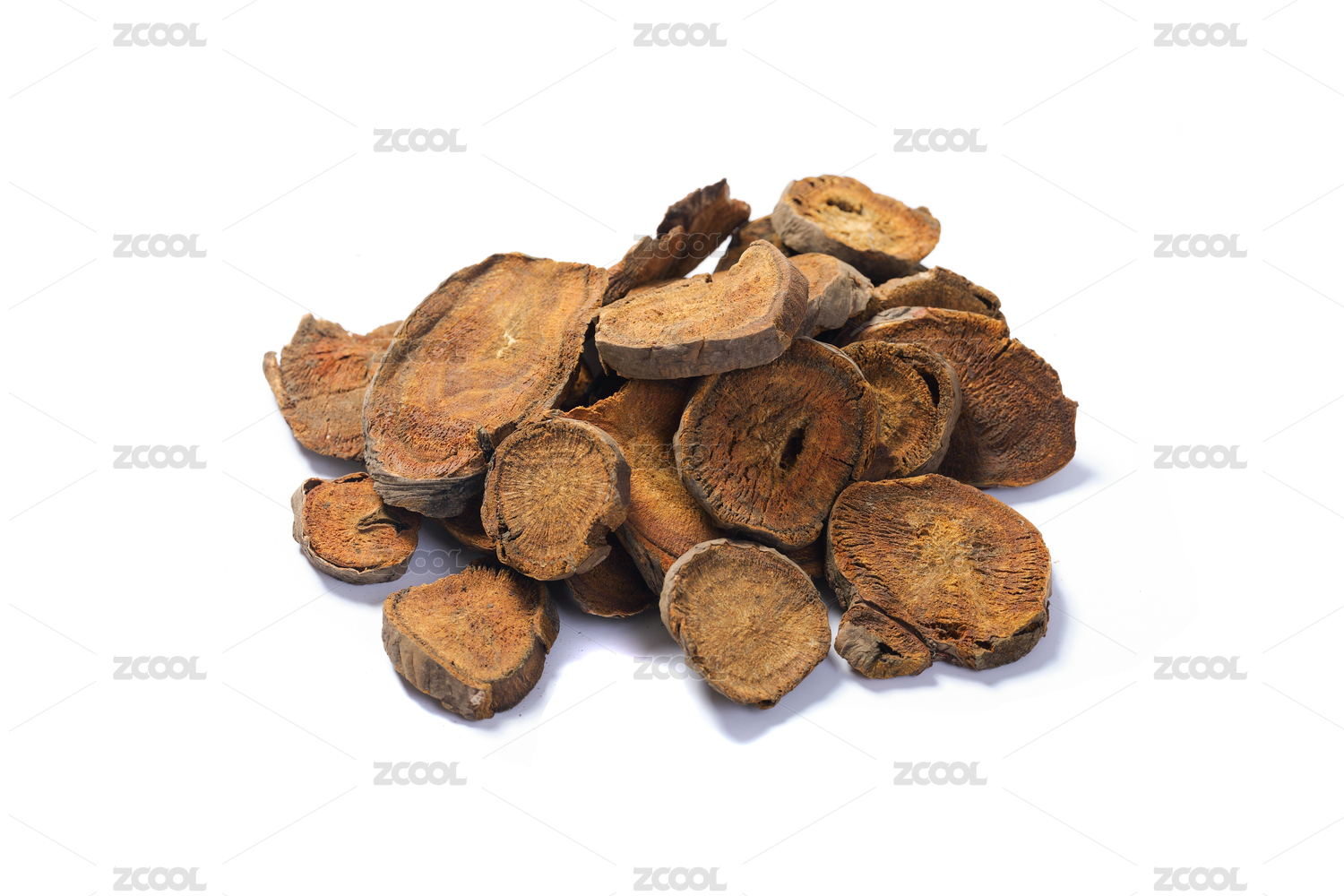 白色背景上的中草药材大黄川军