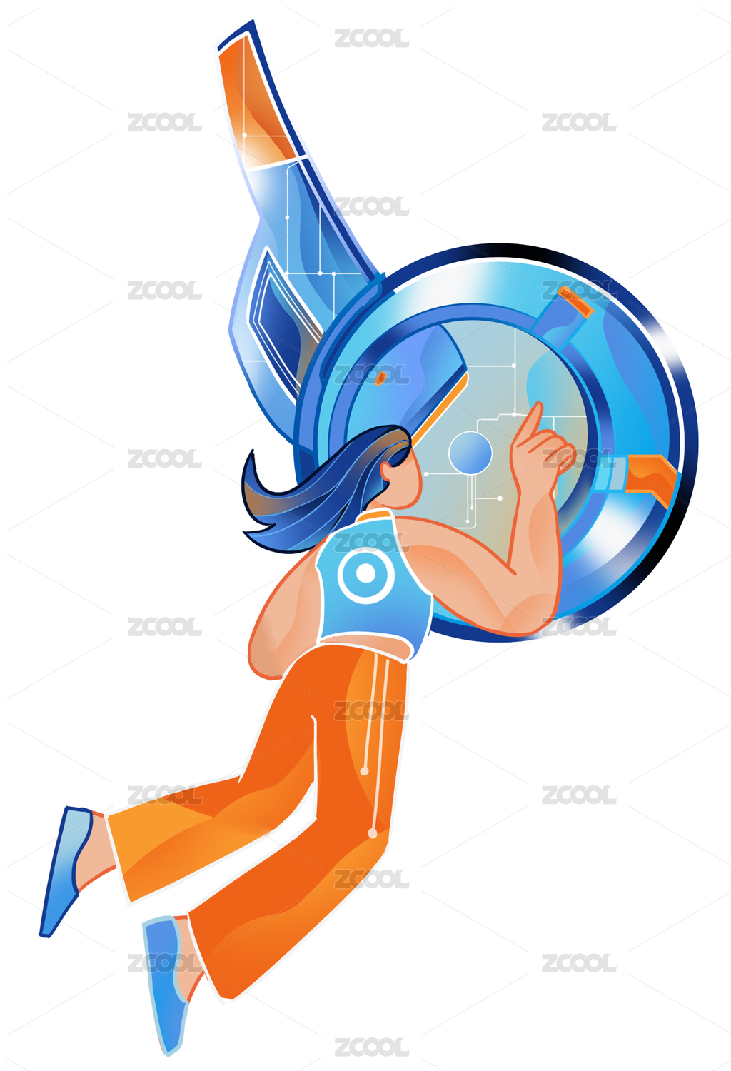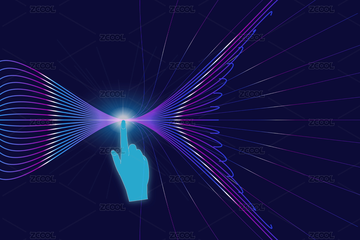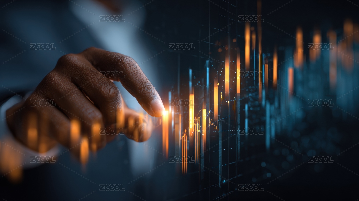 一个穿着西服正装的中国商务女士站在纯色背景下手指触碰着金融线条与美元符号