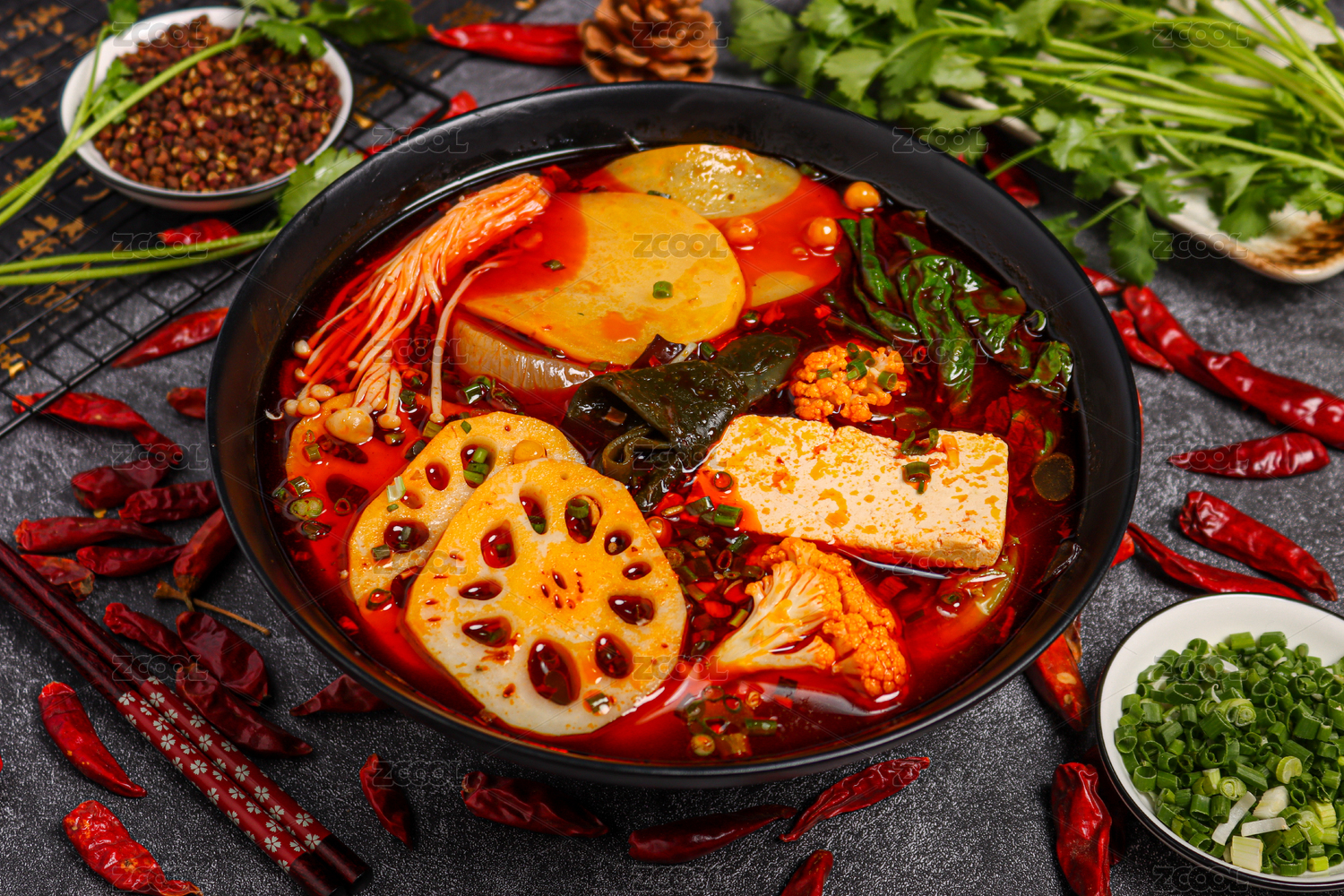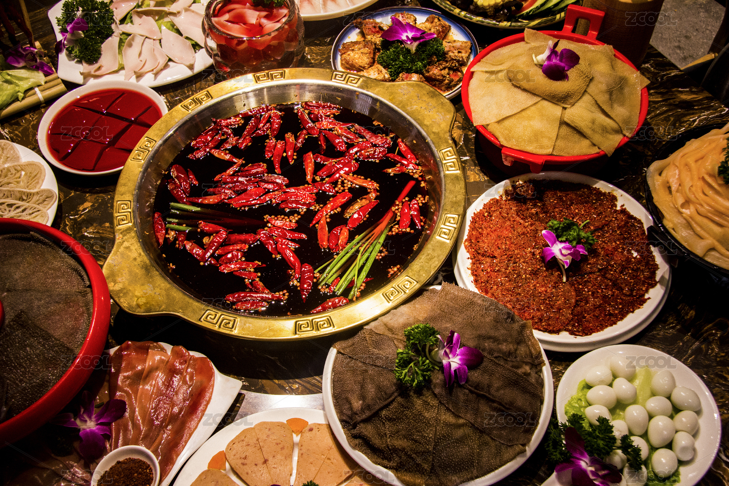 四川特色红油火锅和各种菜品