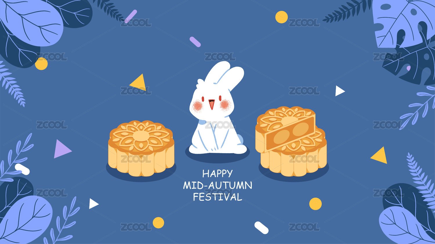 中秋节矢量插画兔子和月饼