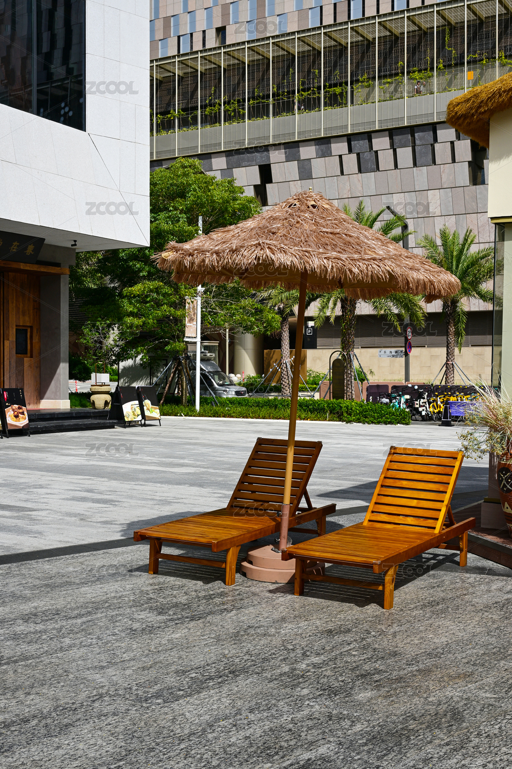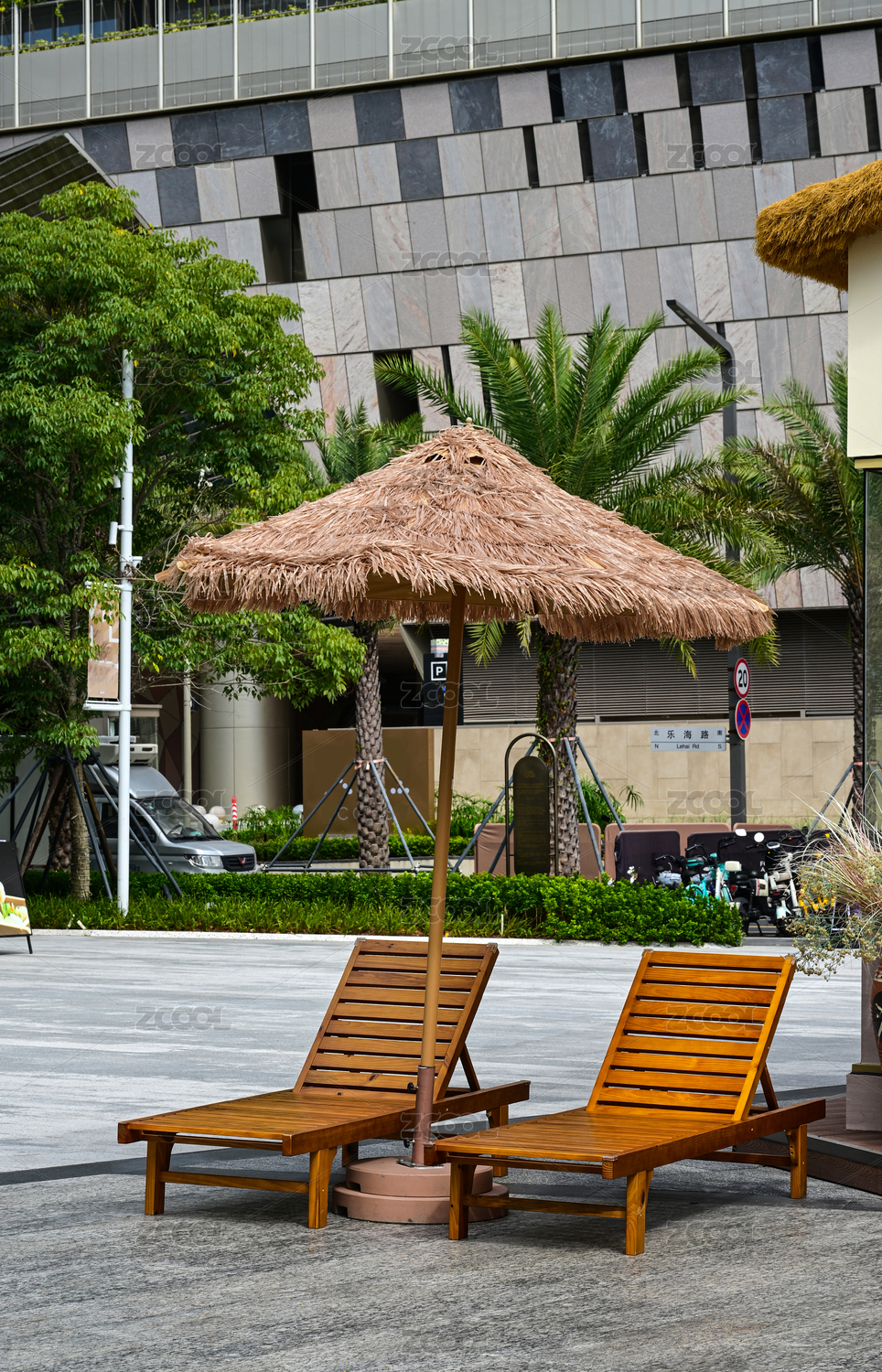 深圳园博园茅草伞下园林庭院休闲茶座景观