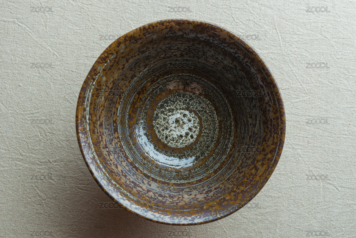 一只带有不规则螺旋斑纹的日本陶瓷面碗