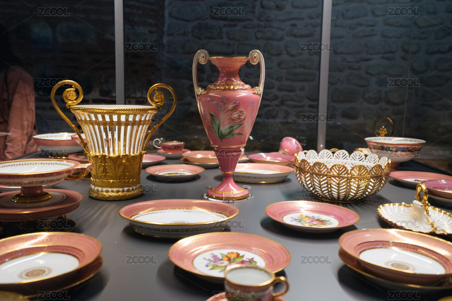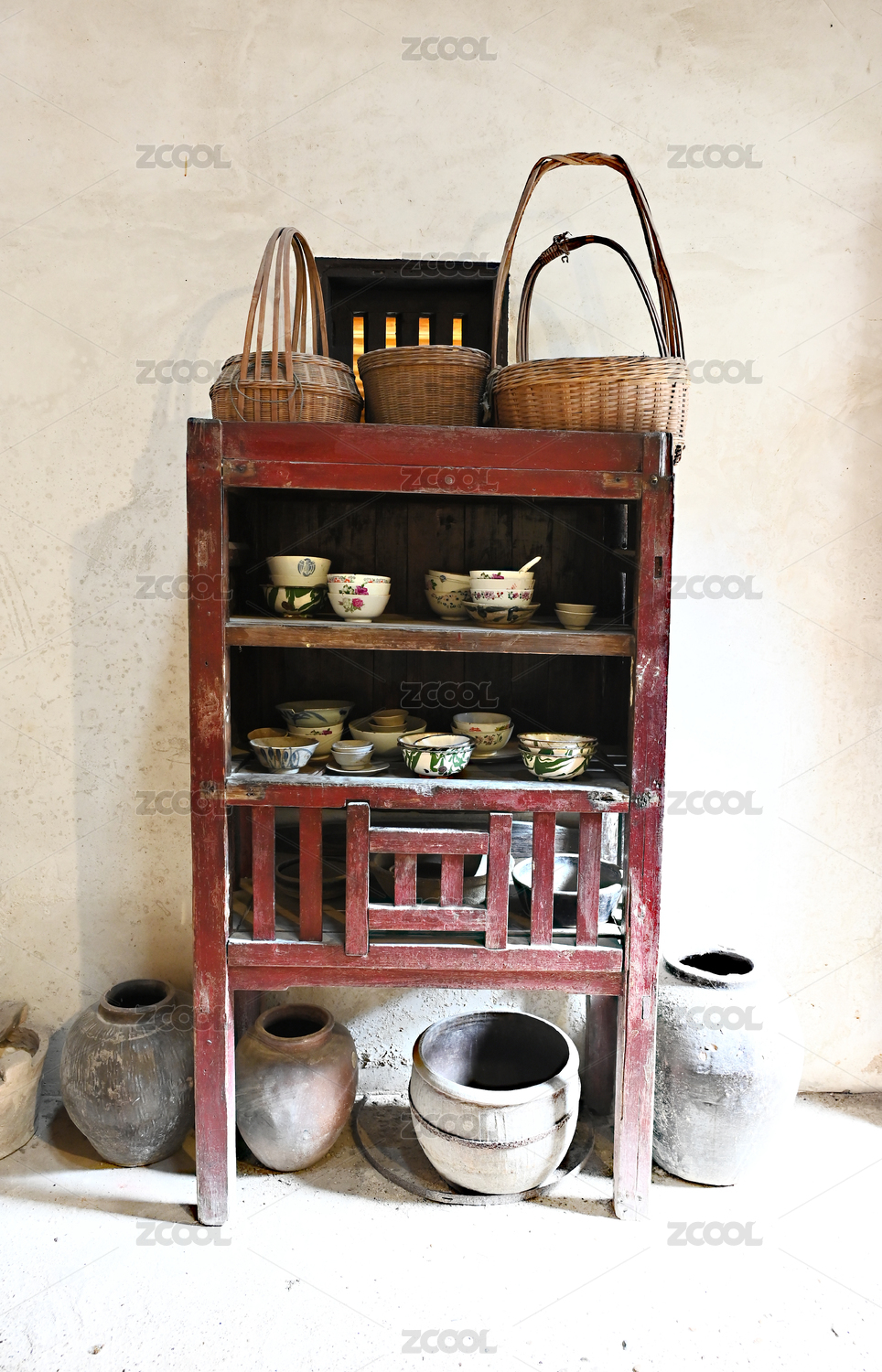 深圳客家民俗博物馆文物老式木柜与瓷碗
