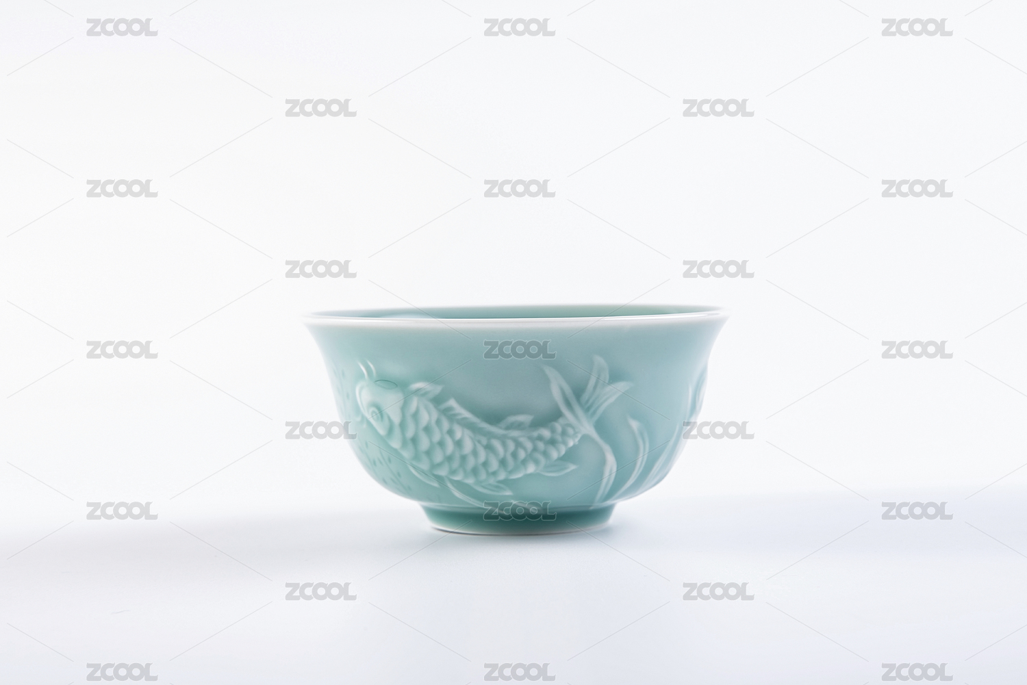 中国风古典陶瓷餐具,吉祥鲤鱼花纹龙泉青瓷饭碗