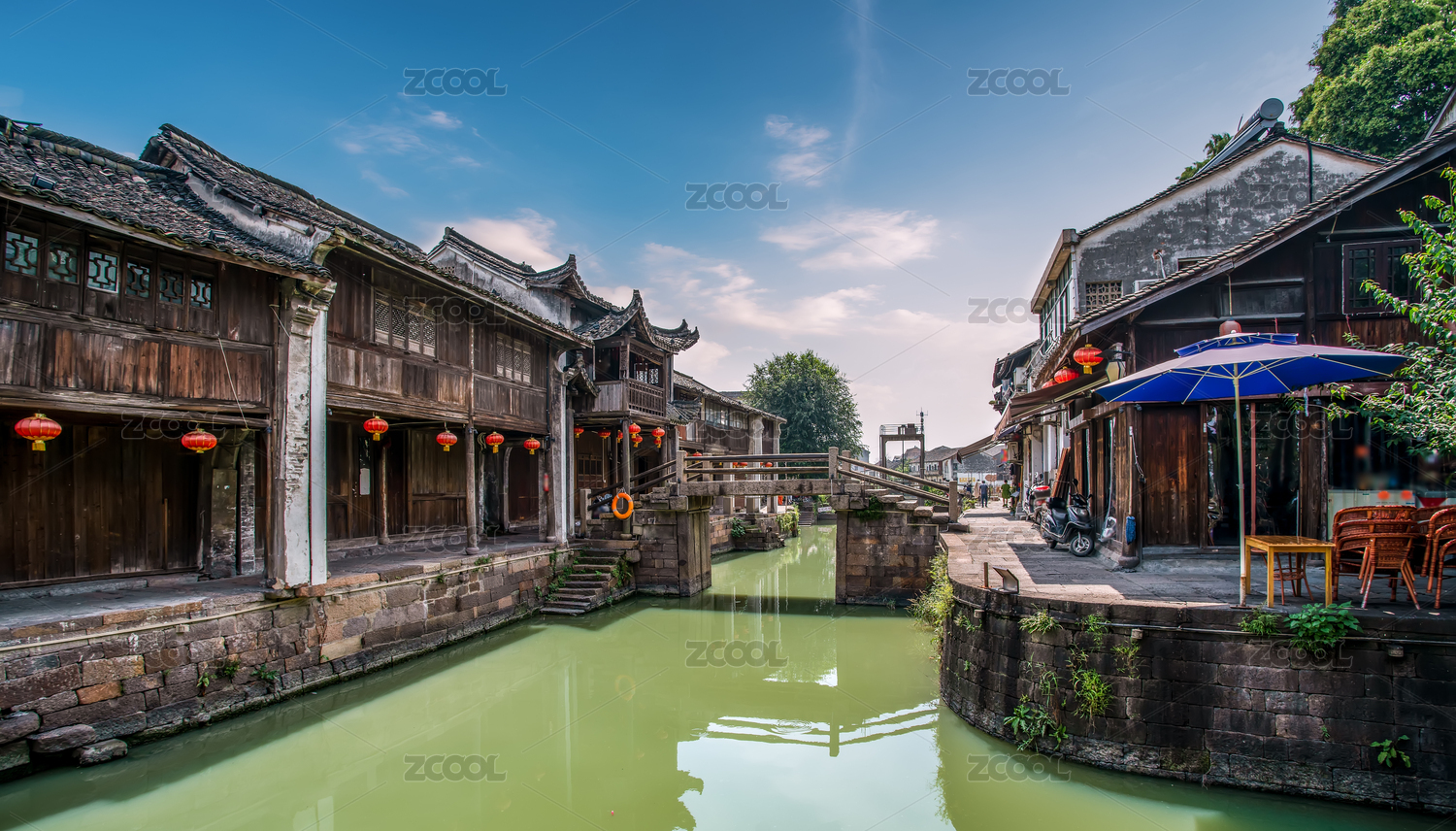 浙江省湖州市荻港古镇古村落房屋建筑风光