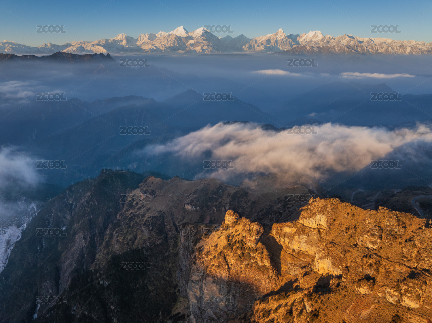 中国四川清晨阳光下大雪山贡嘎山系与牛背山
