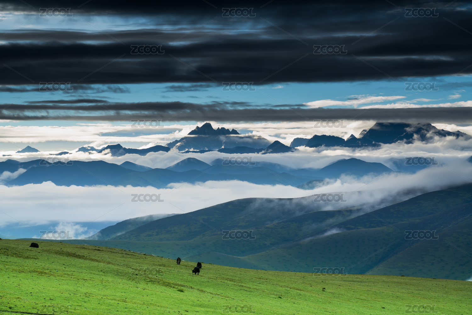 中国四川横断山脉大雪山爱德嘉峰清晨云海