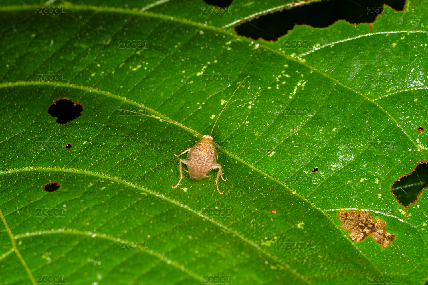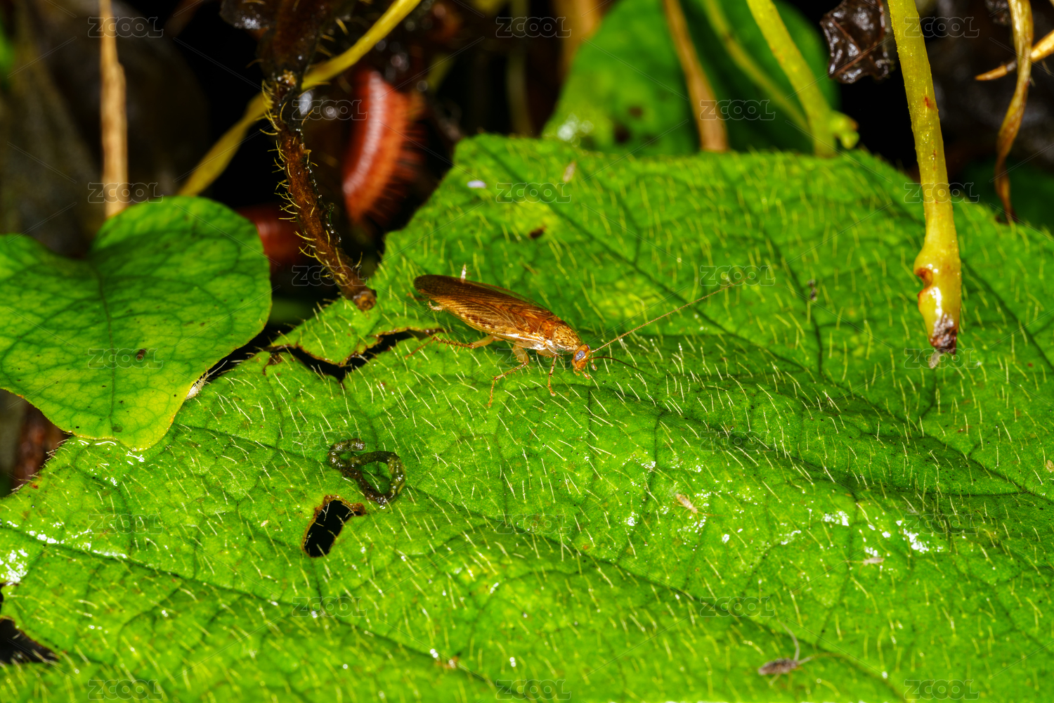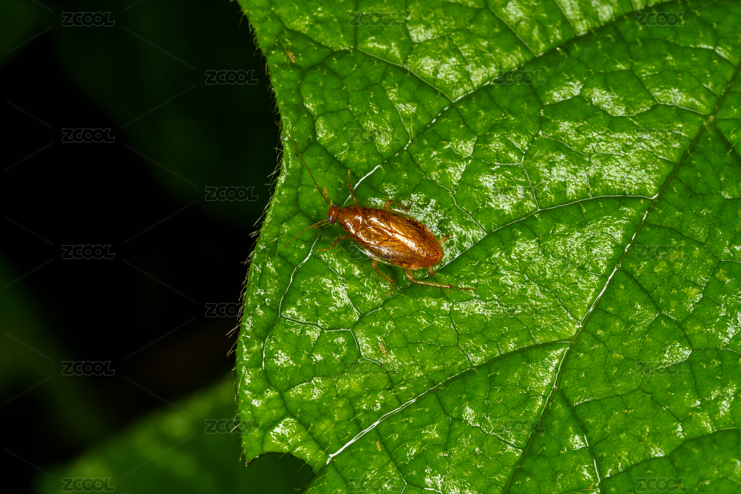 绿叶上的蟑螂近景特写