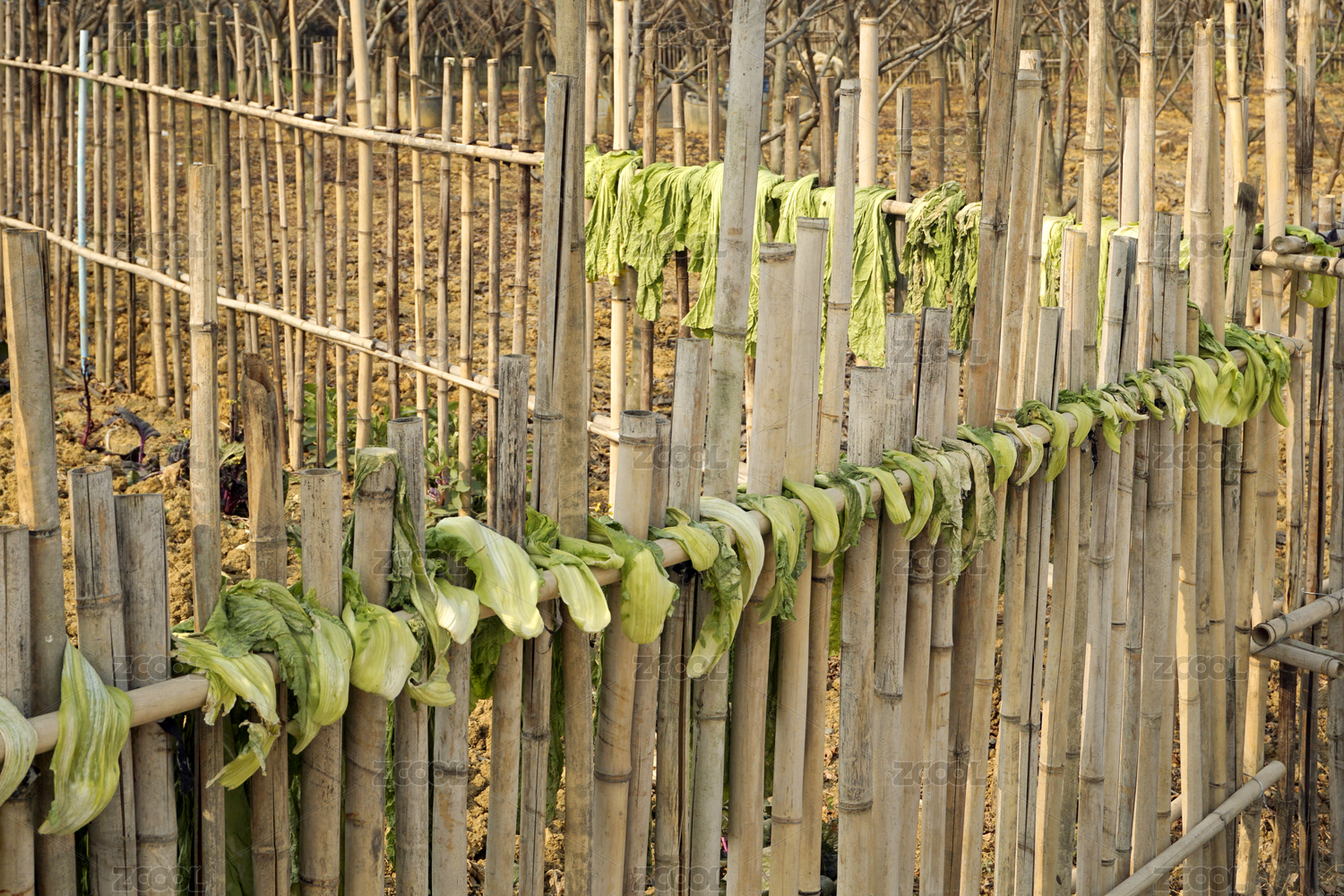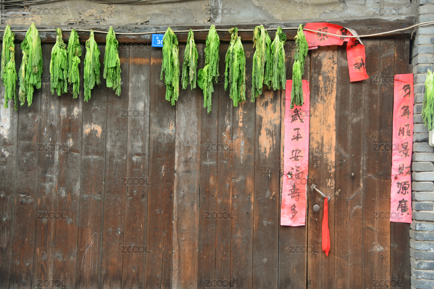 四川成都悦来古镇木墙晾晒的做盐菜的芥菜
