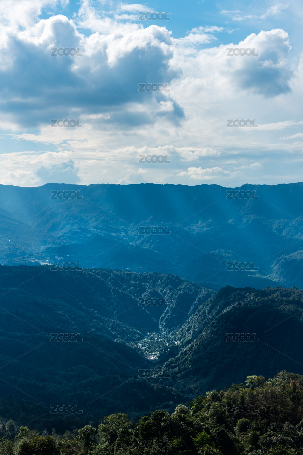 四川省雅安市蒙顶山景区丁达尔光线照进山坳