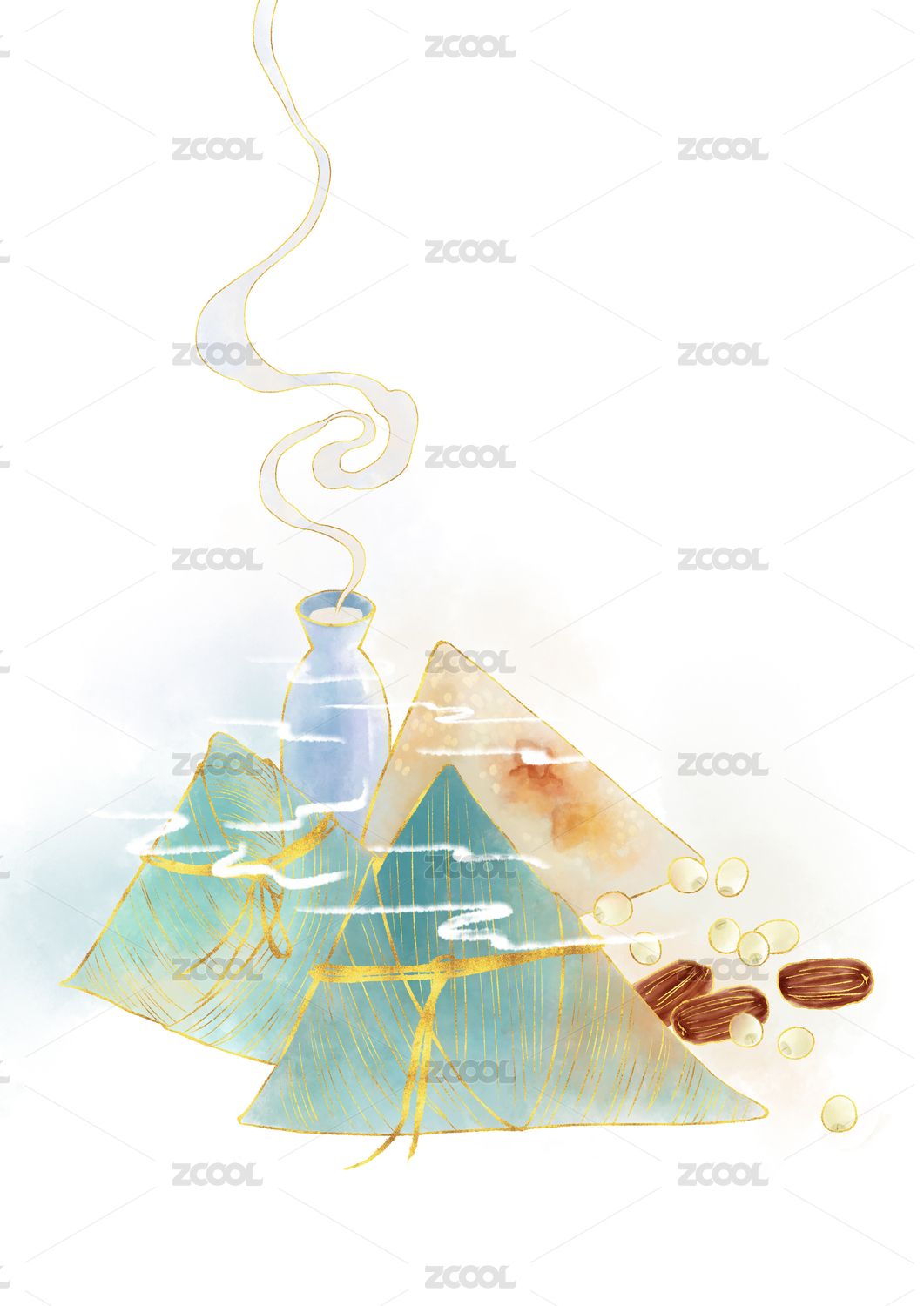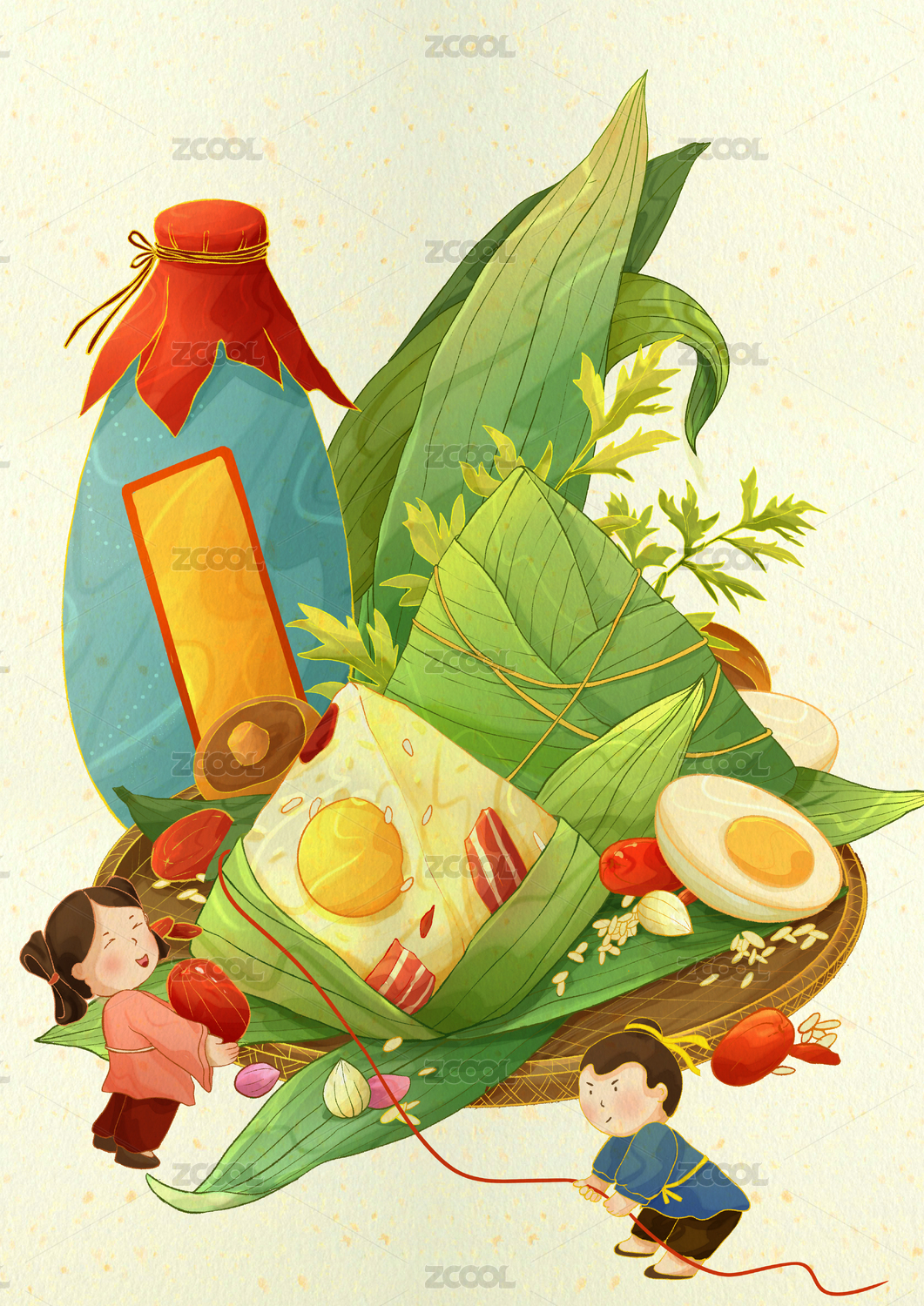 中国端午节龙舟粽子雄黄酒国风插画大图