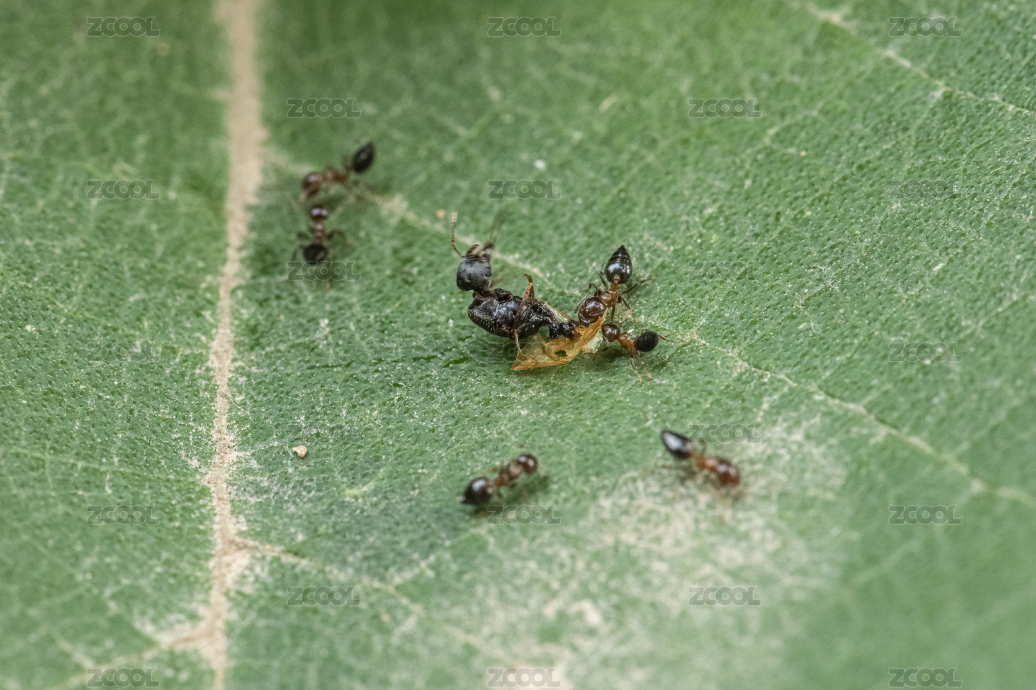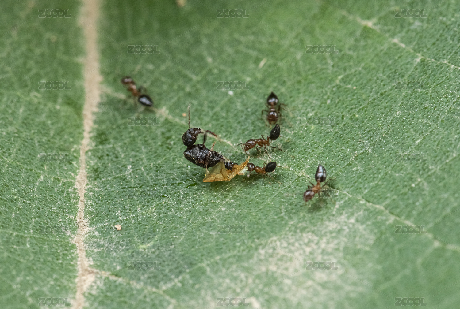 绿叶上的蚂蚁群