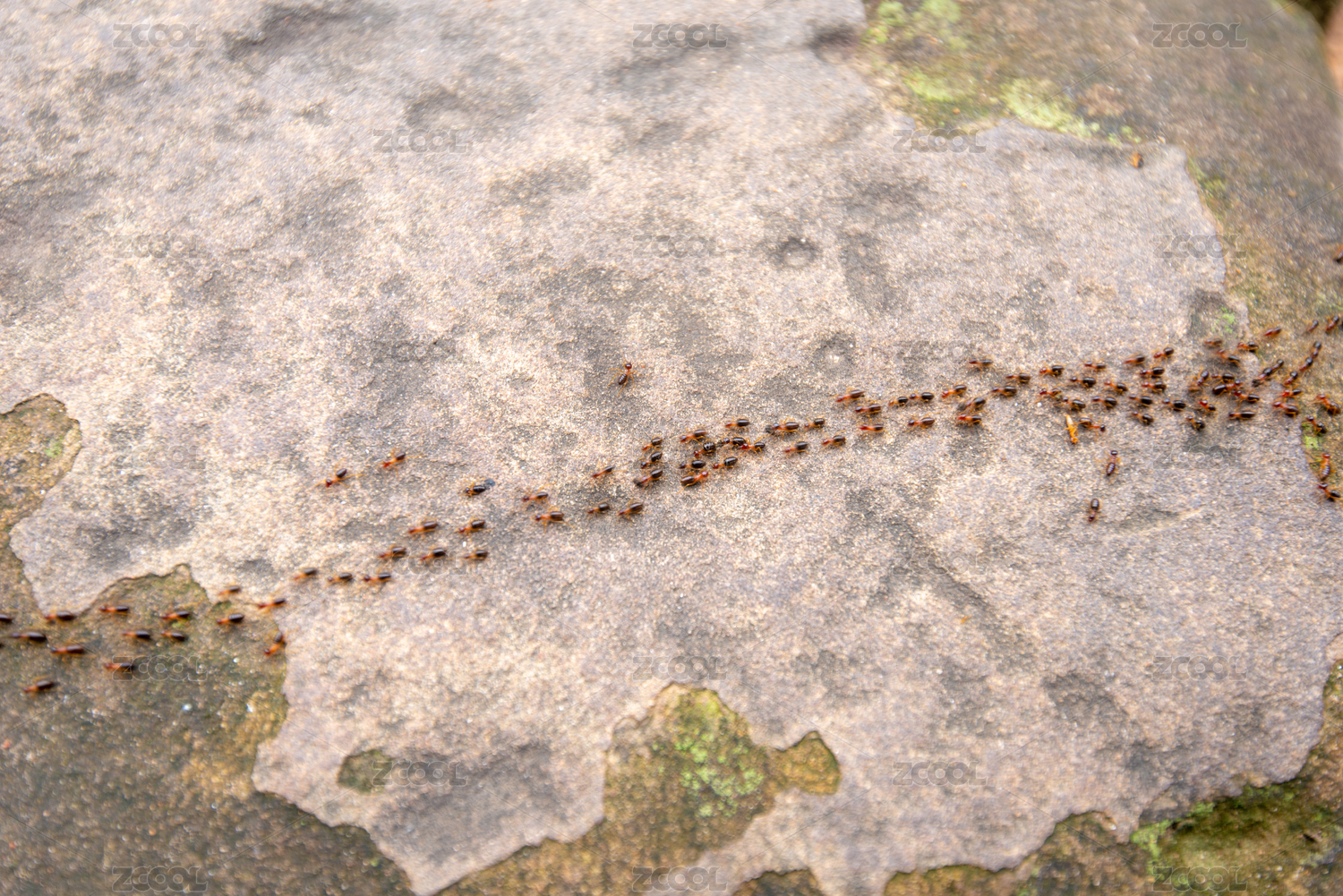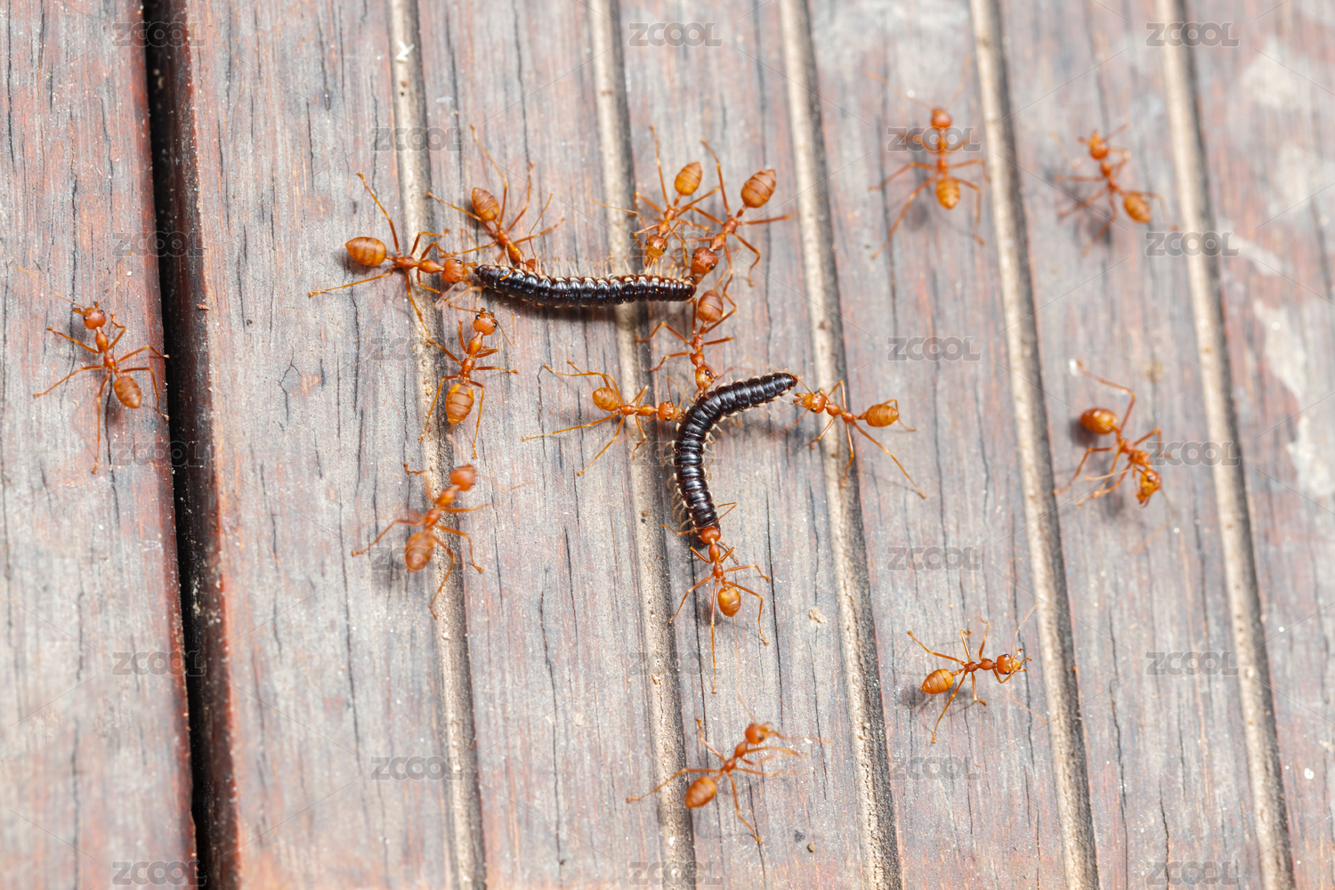 红色木板上一群蚂蚁正在捕食