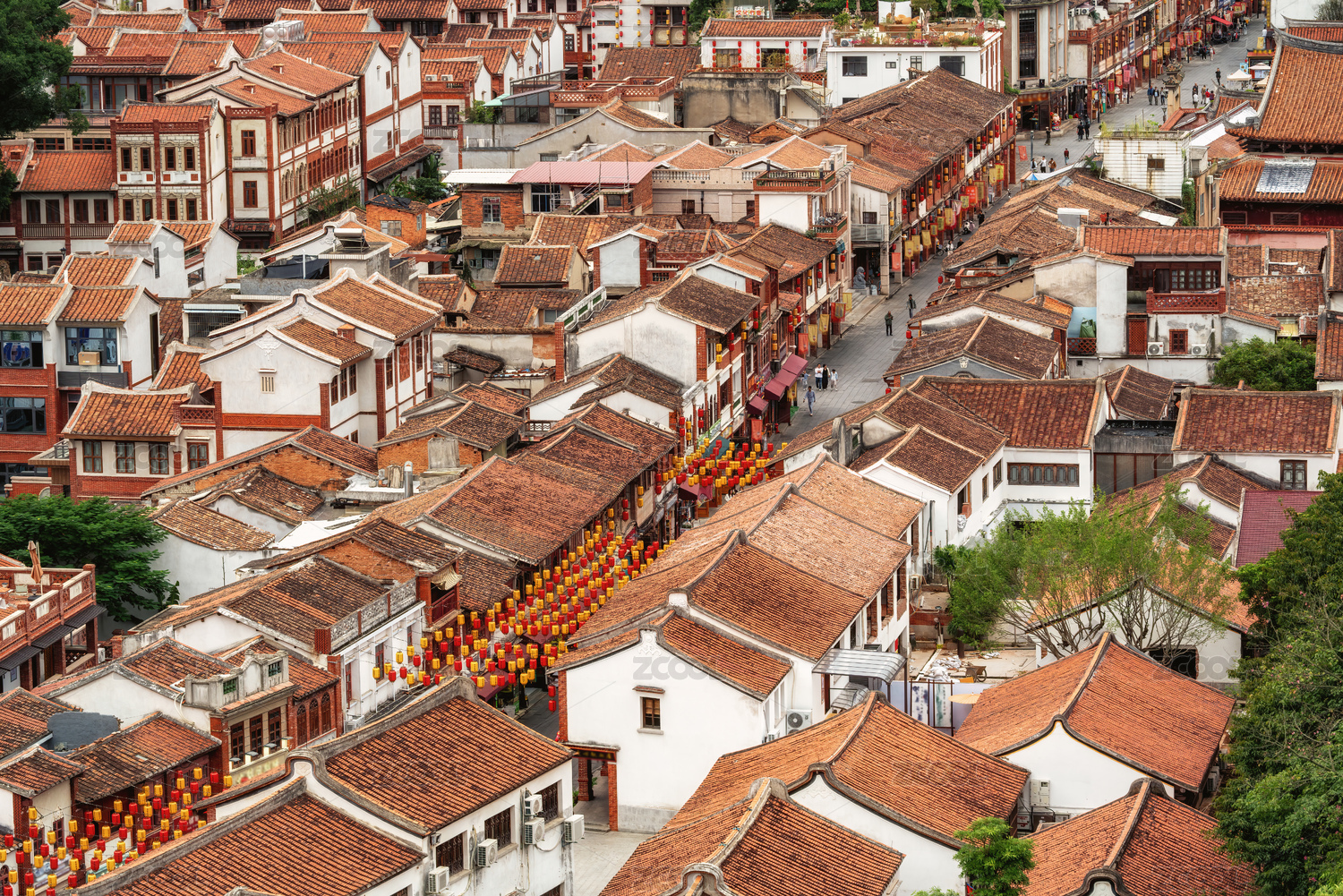 泉州西街商业街区中式红色房屋