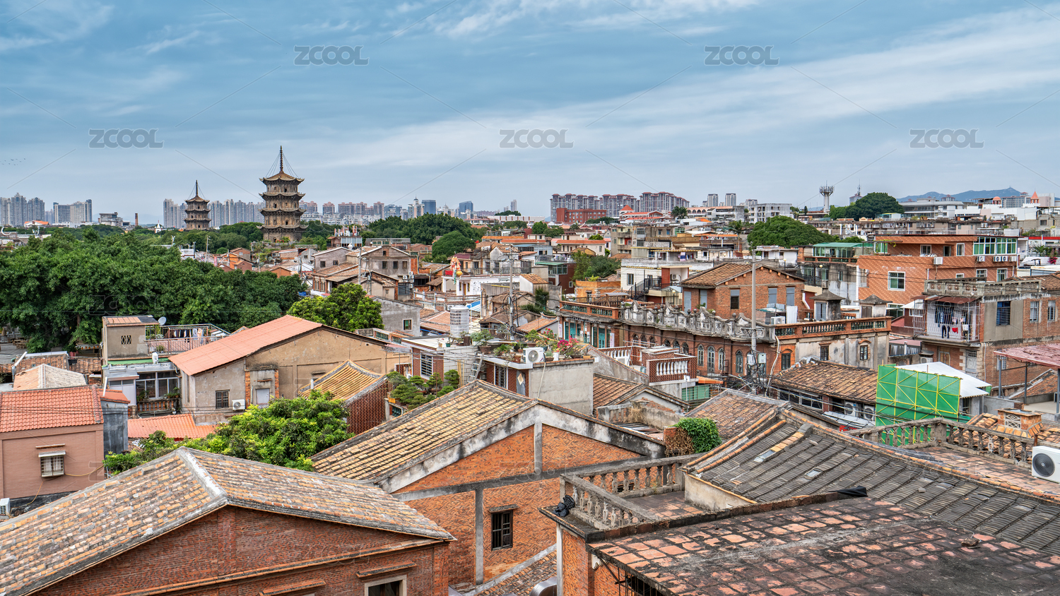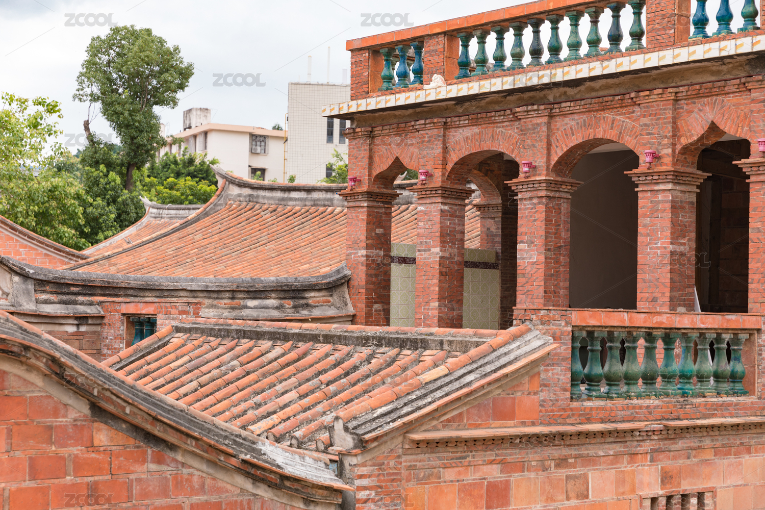 红砖古厝红瓦屋顶