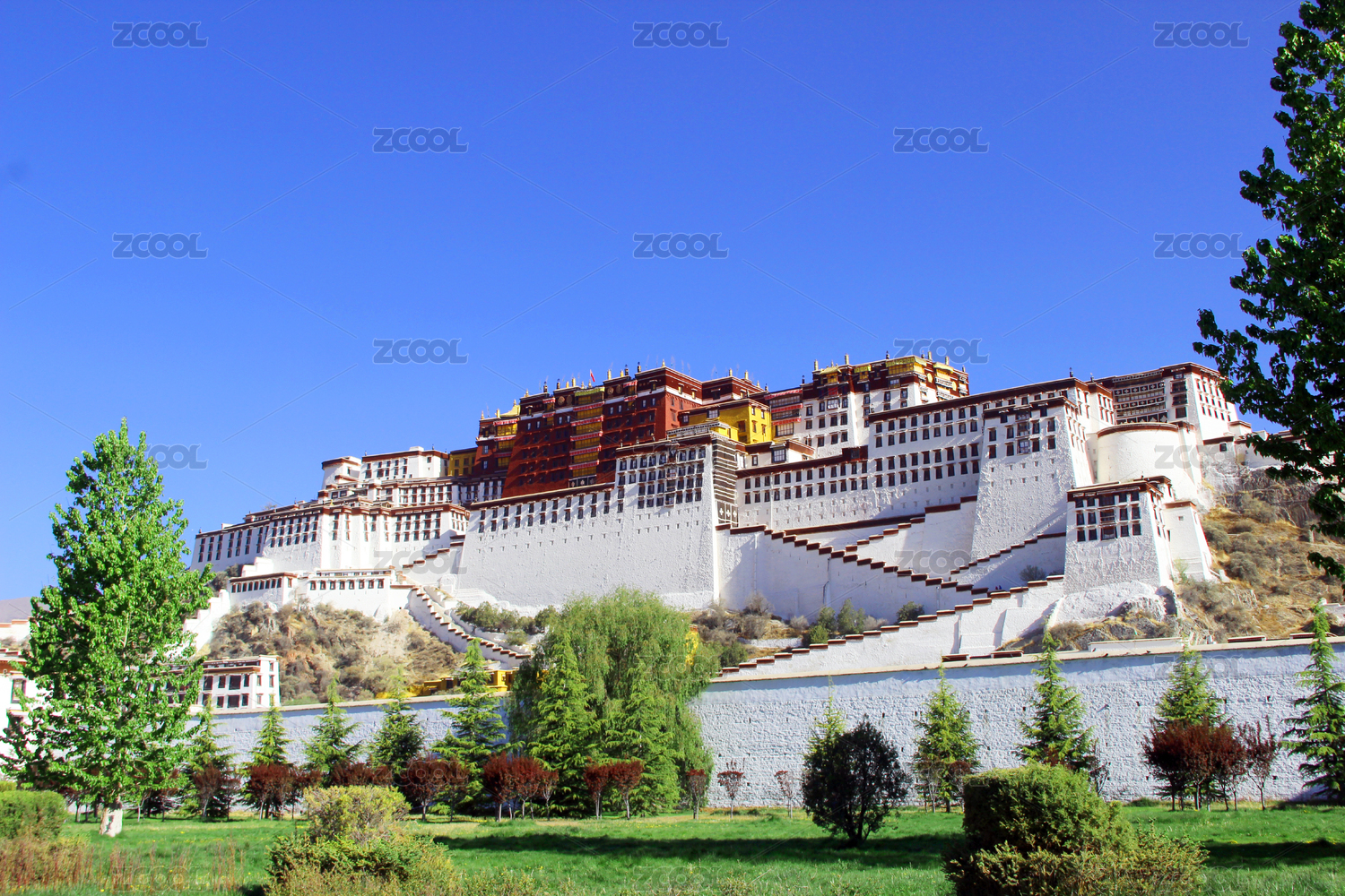 中国西藏拉萨布达拉宫白宫和红宫仰望布达拉宫