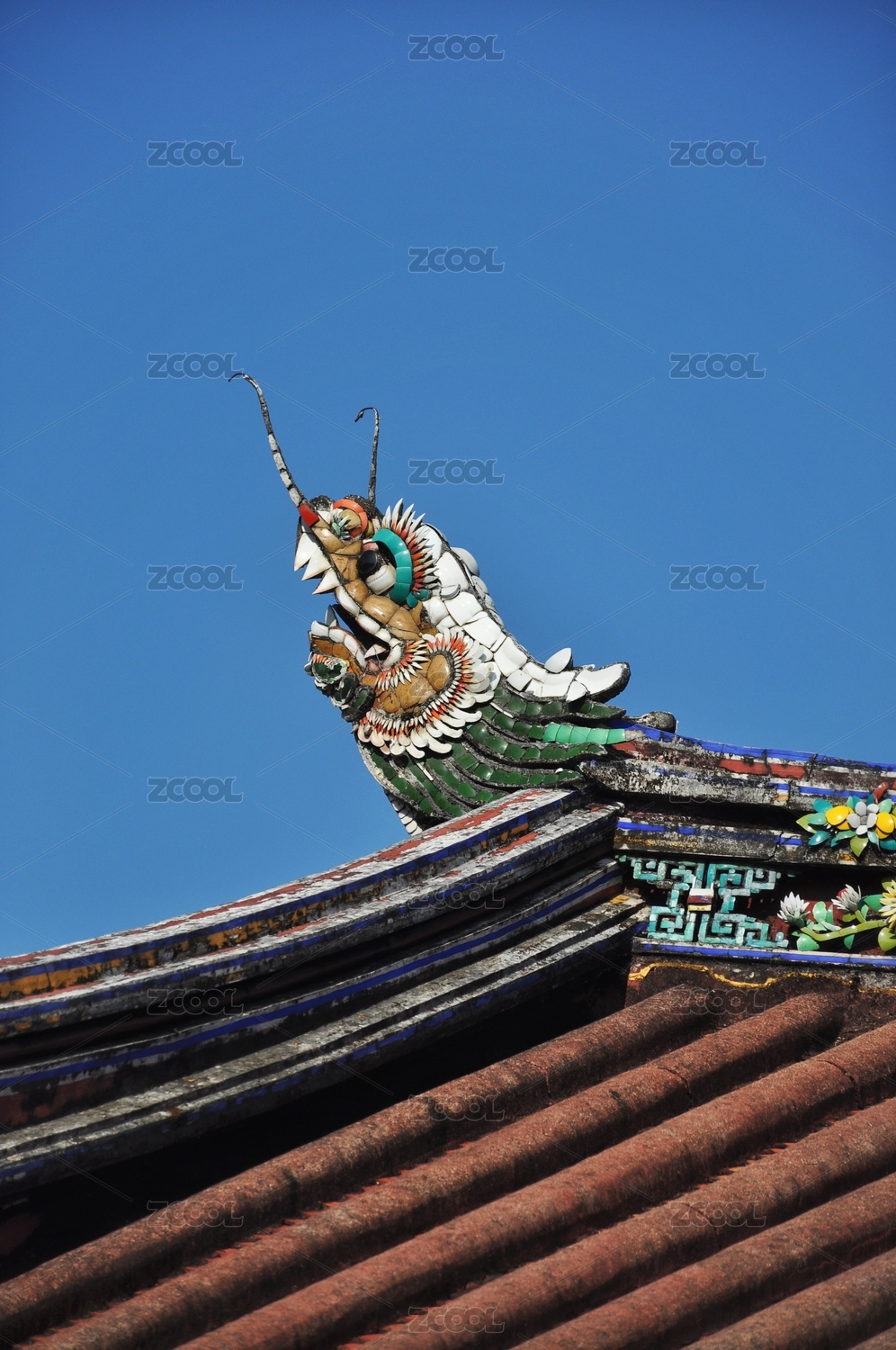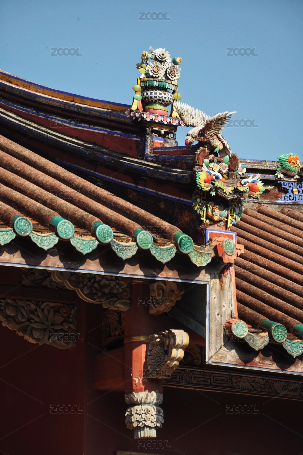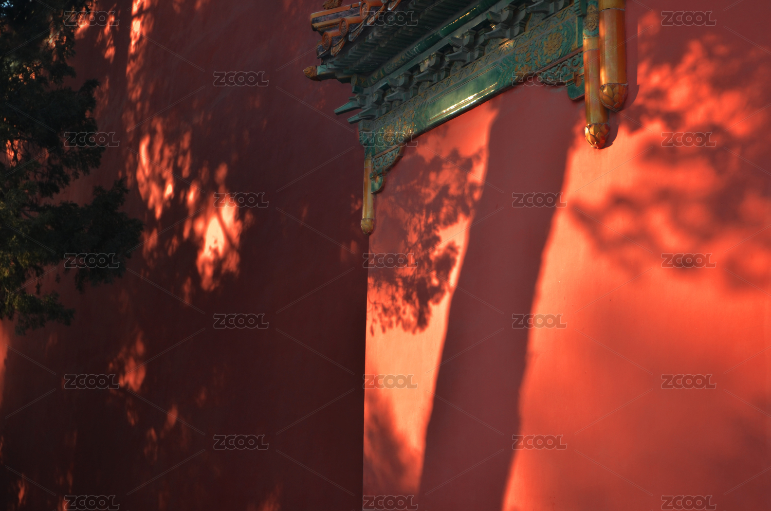 北京故宫阳光斜射在红宫墙绿瓦上