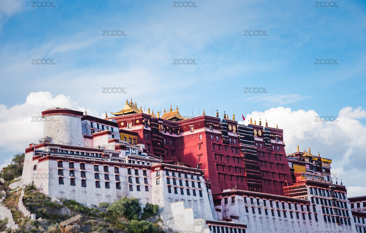 西藏拉萨布达拉宫的蓝天白云风光