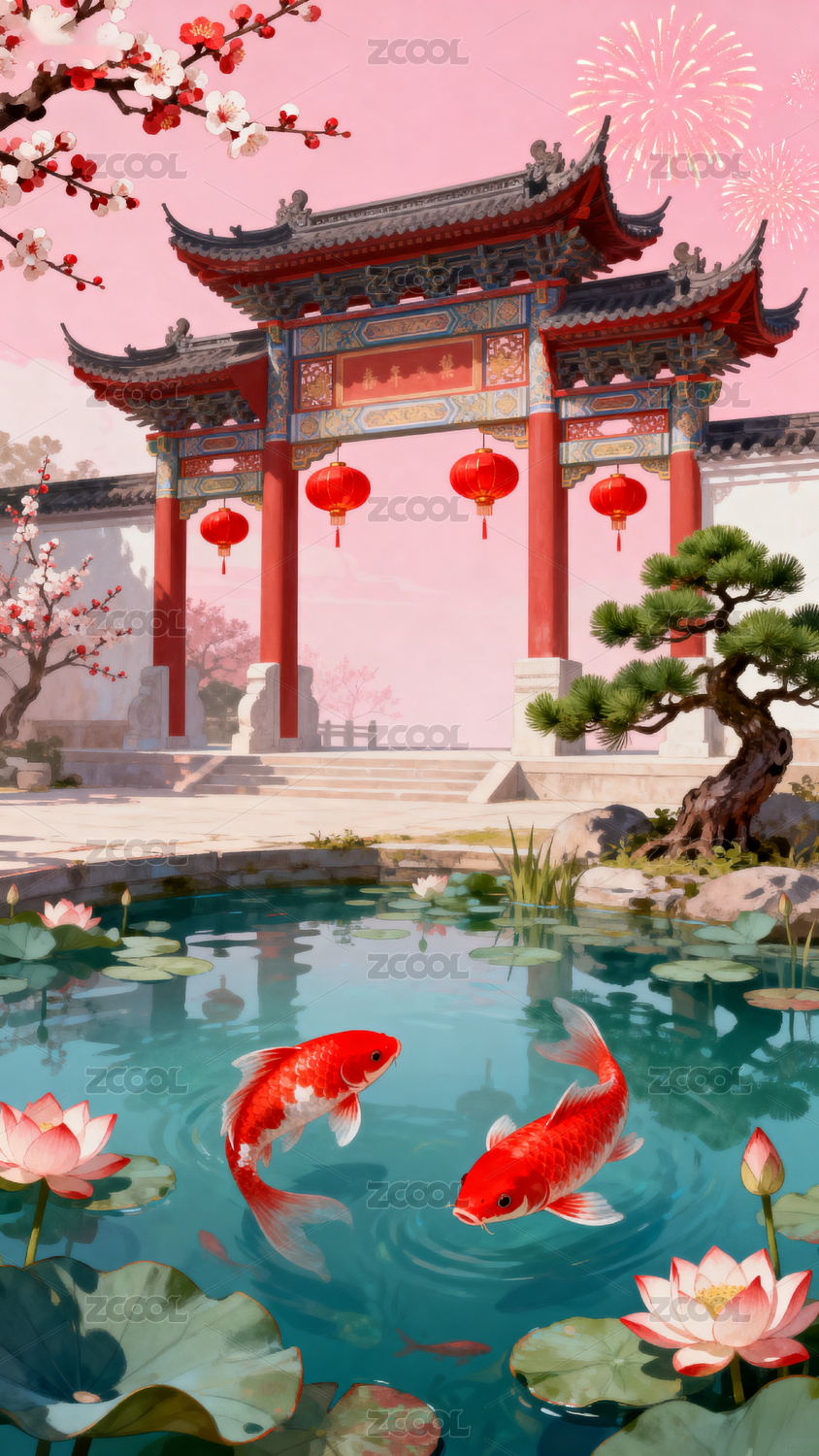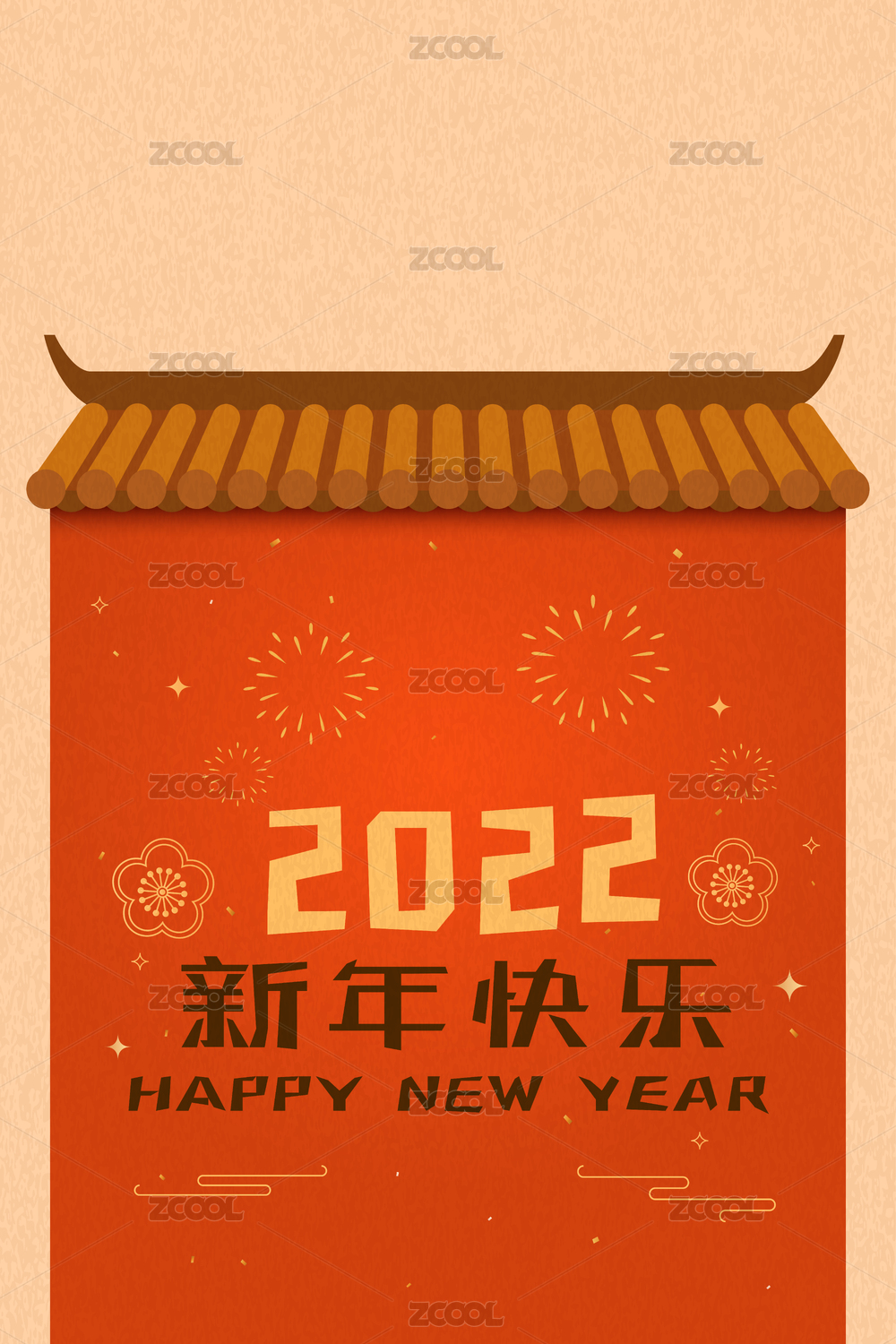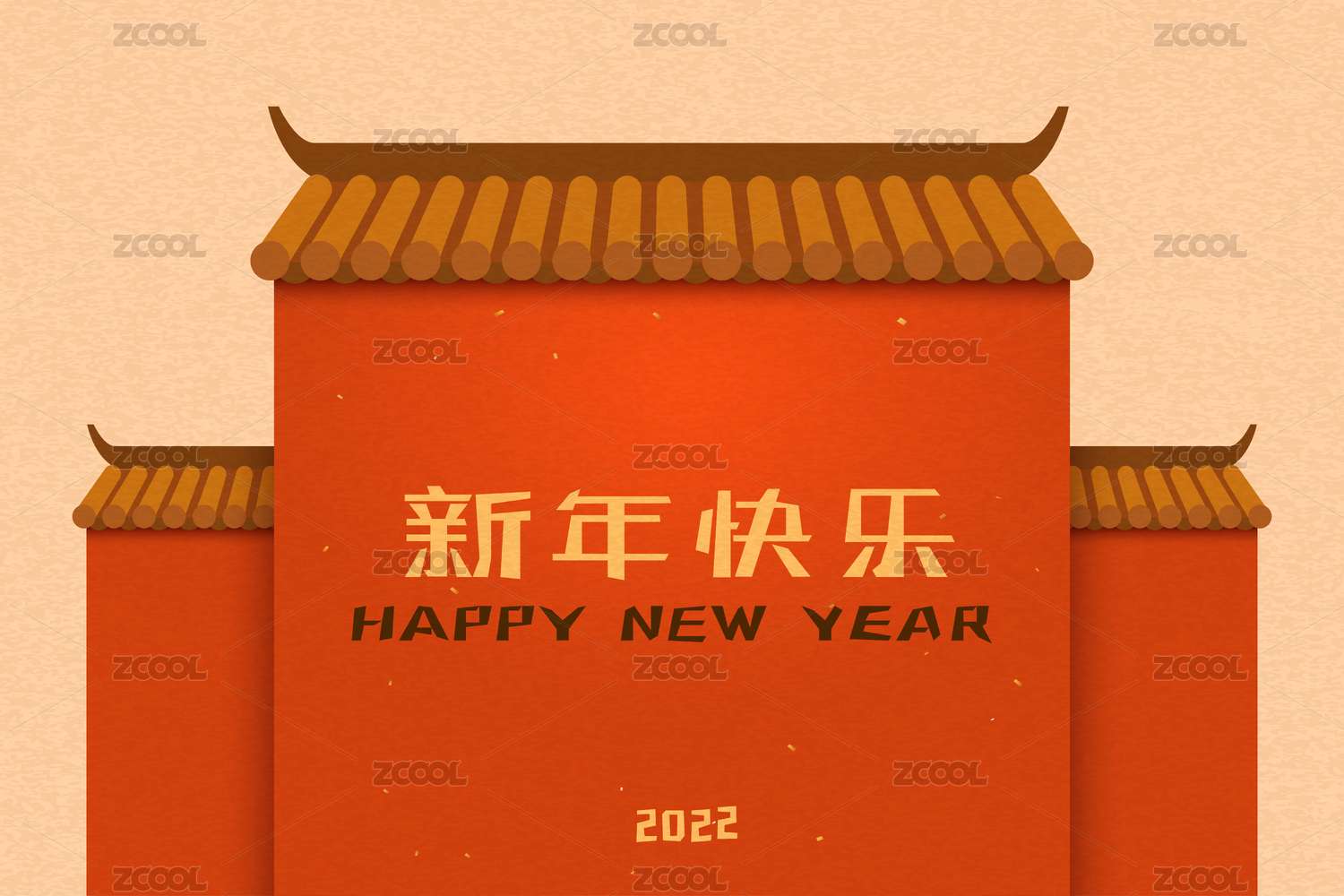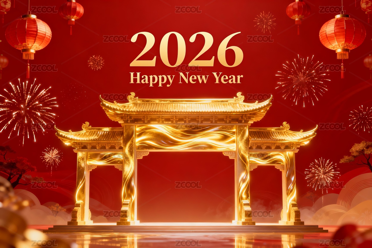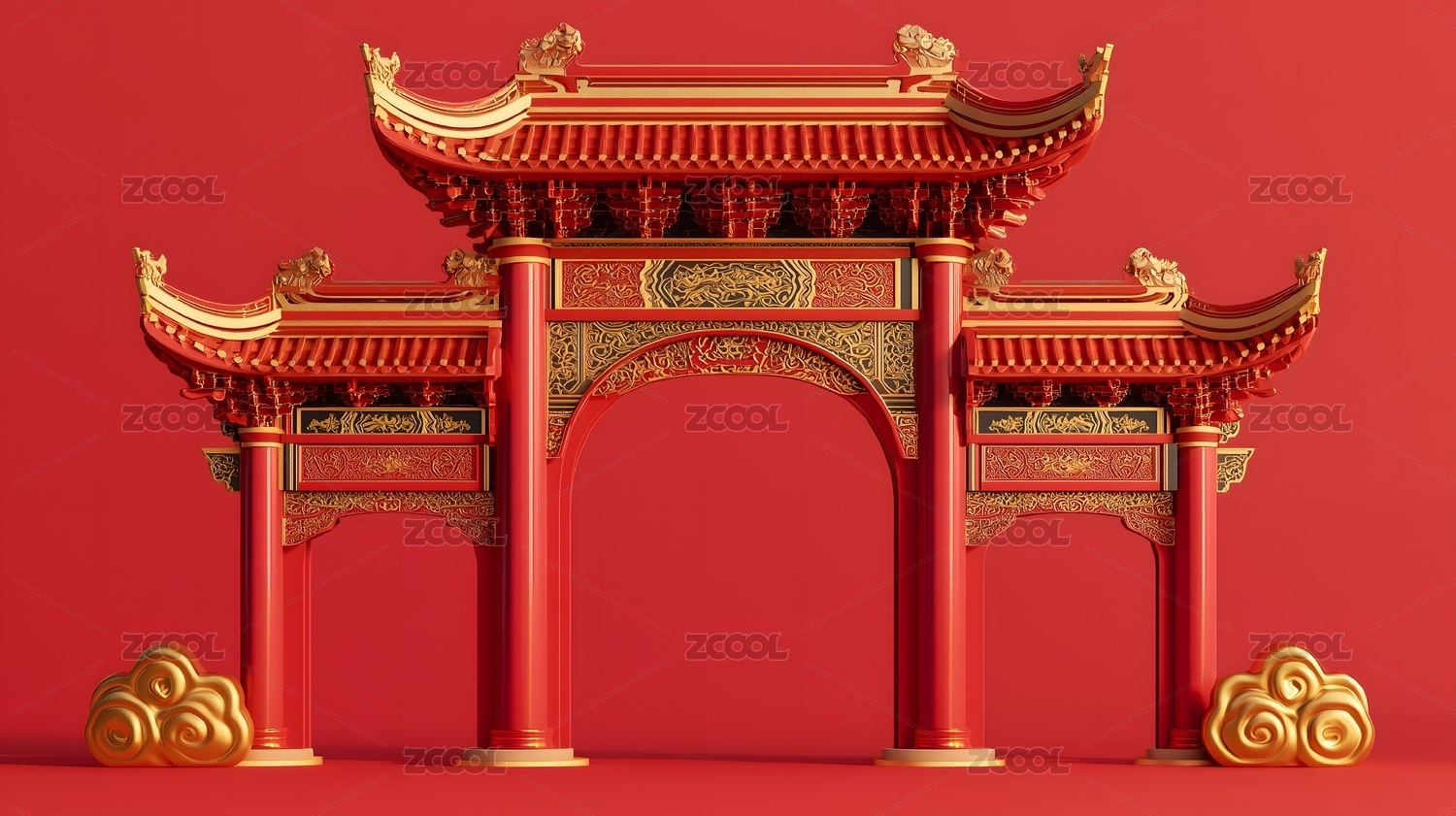 新年喜庆高级感金色线条勾勒红色牌楼背景