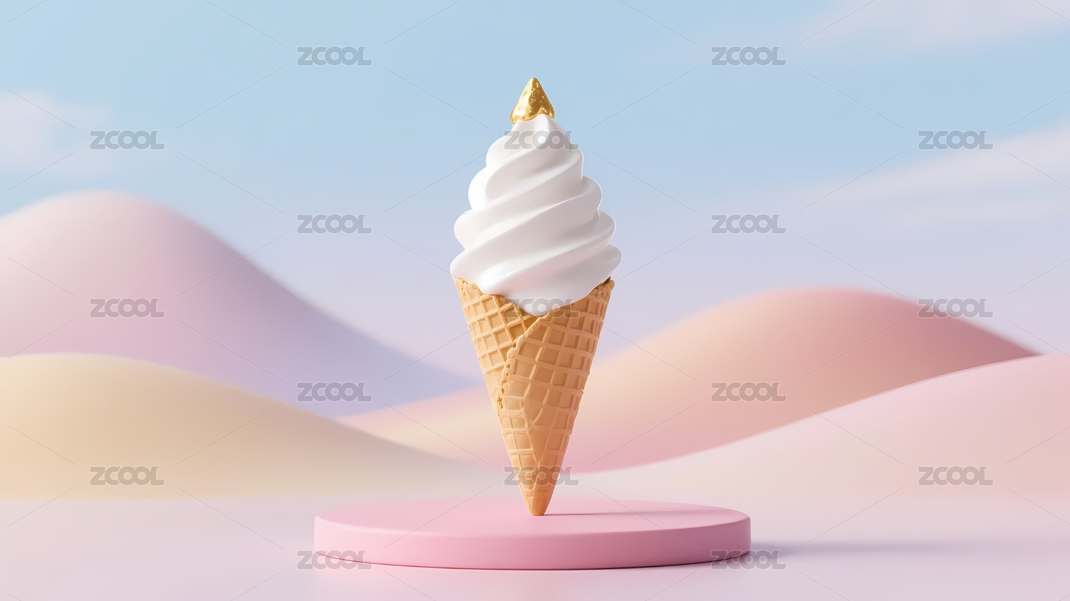 白冰淇淋粉蓝云朵丘