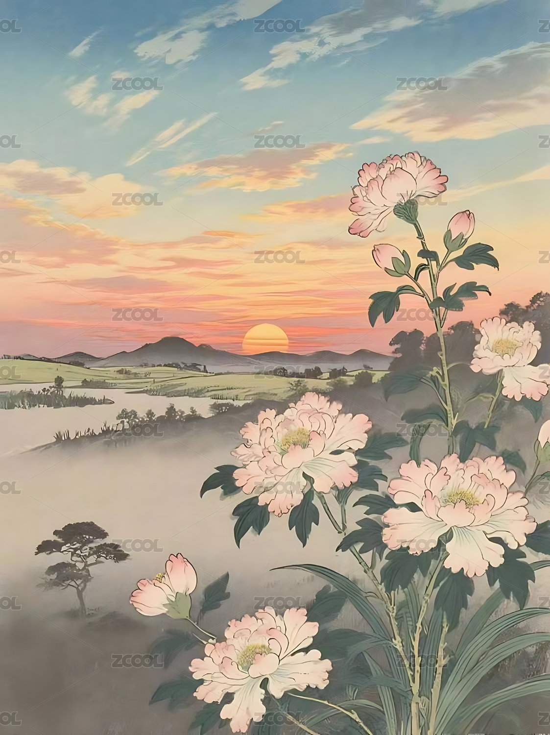 残阳下的晚照图
