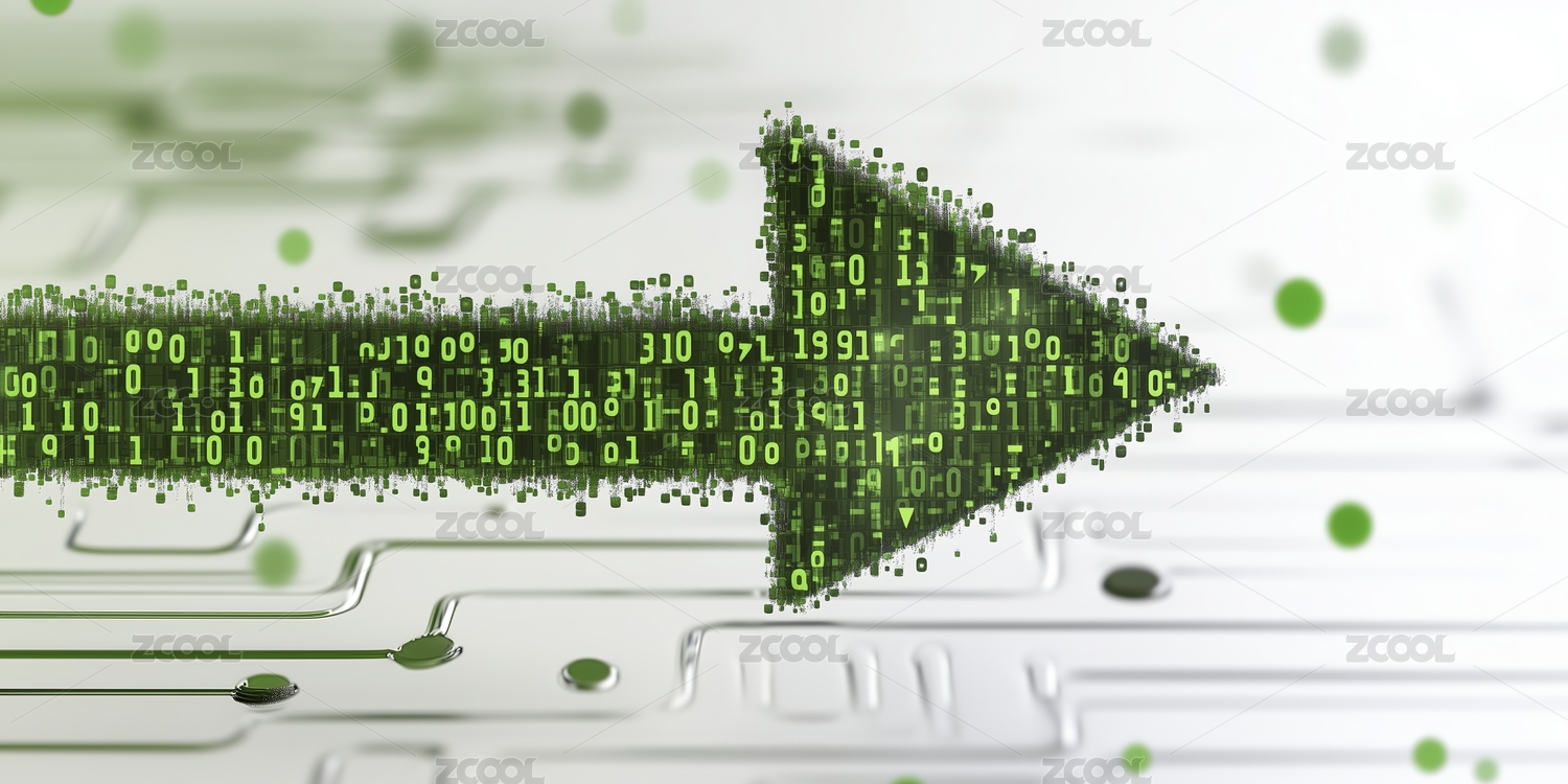 一个由二进制代码组成的绿色箭头