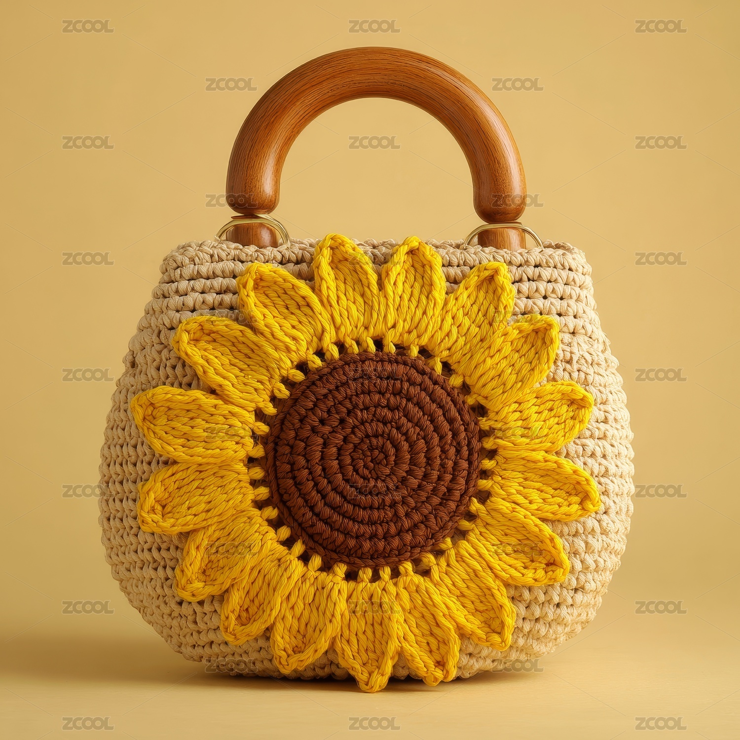 向日葵图案手提草编包