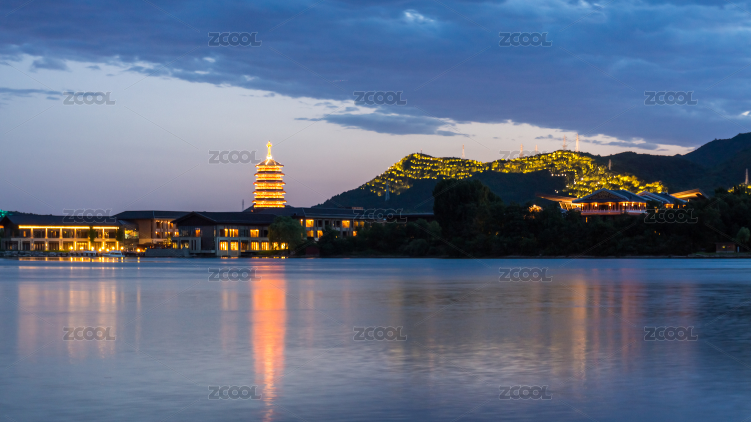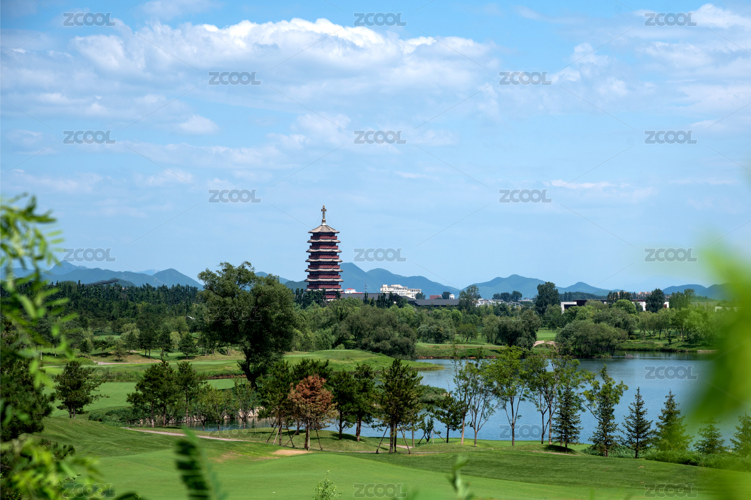 中国北京雁栖湖区内的雁栖塔及别墅区