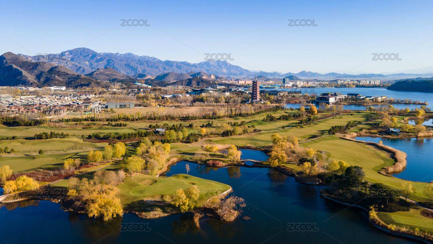 航拍秋天的中国北京雁栖湖