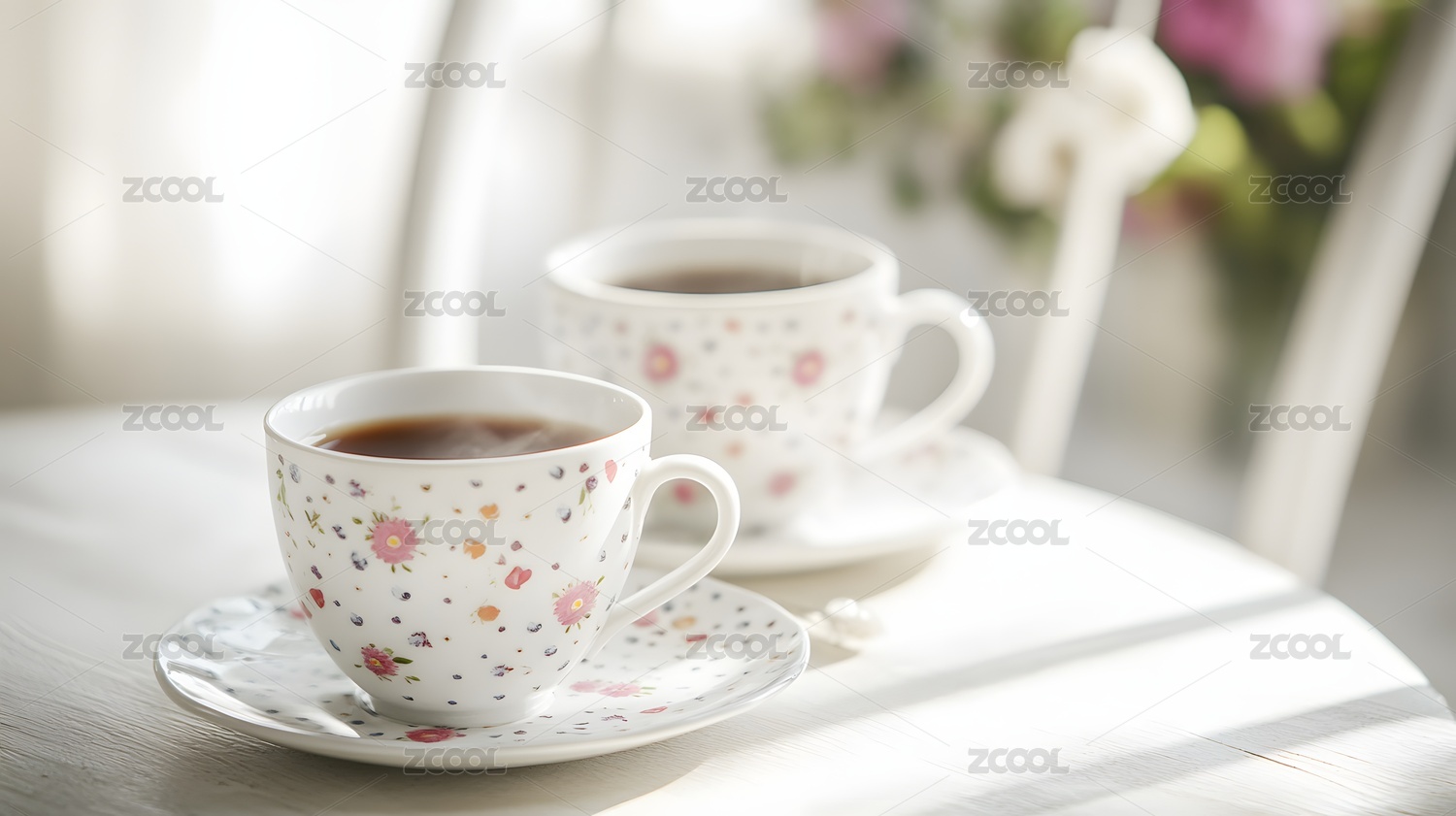 光影下白色简约咖啡杯温馨静谧生活美学素材
