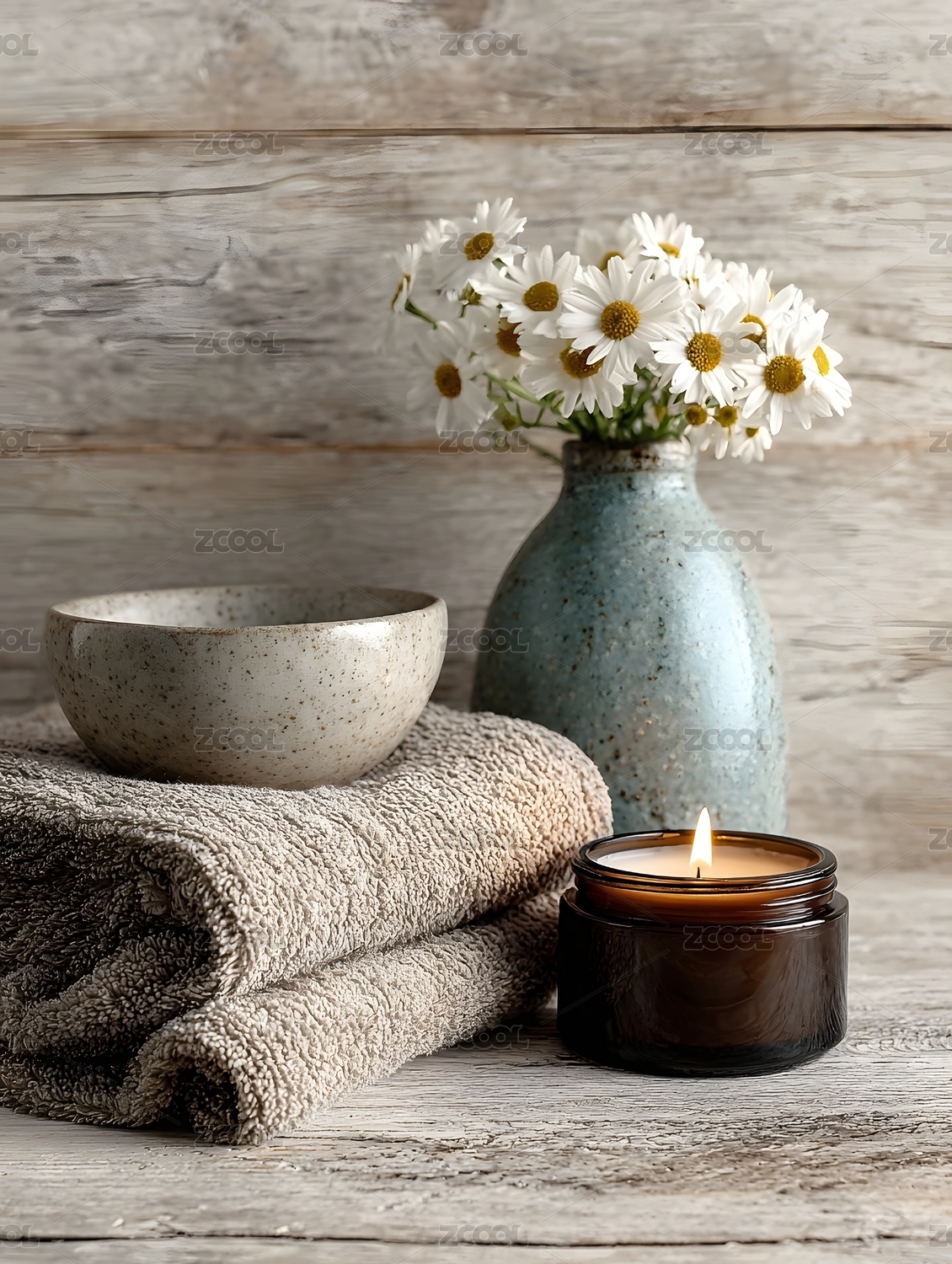 简约生活美学:碗中鹅卵石与花瓶装饰