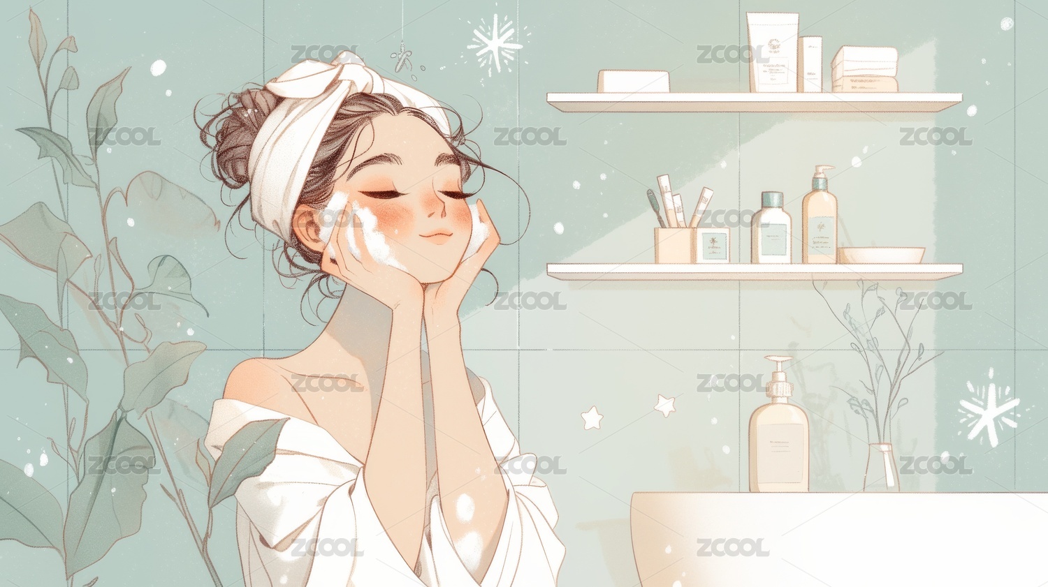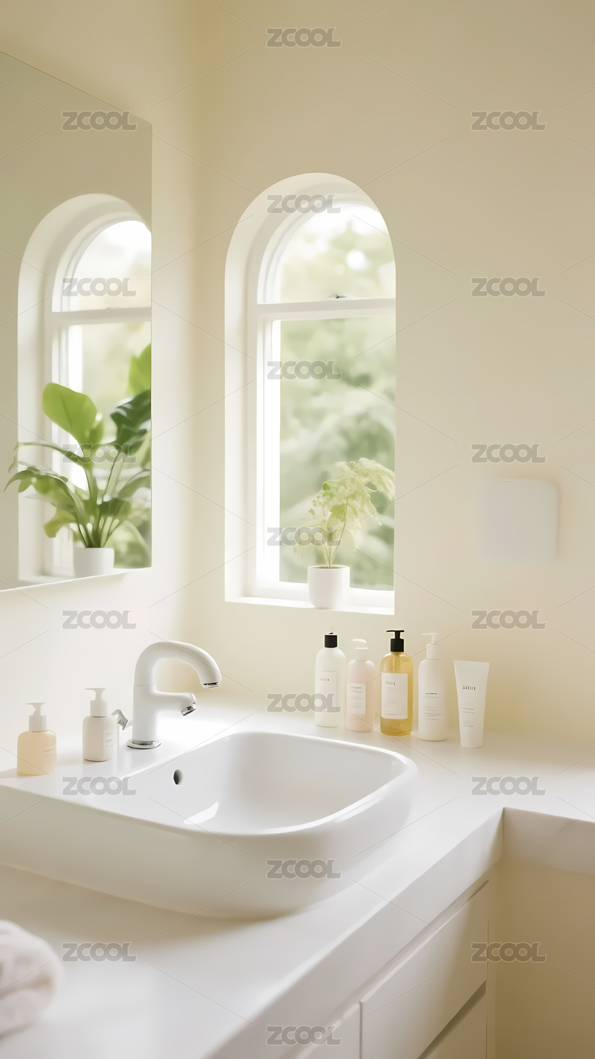 薄荷绿清新浴室 | ins 风治愈洗手台背景