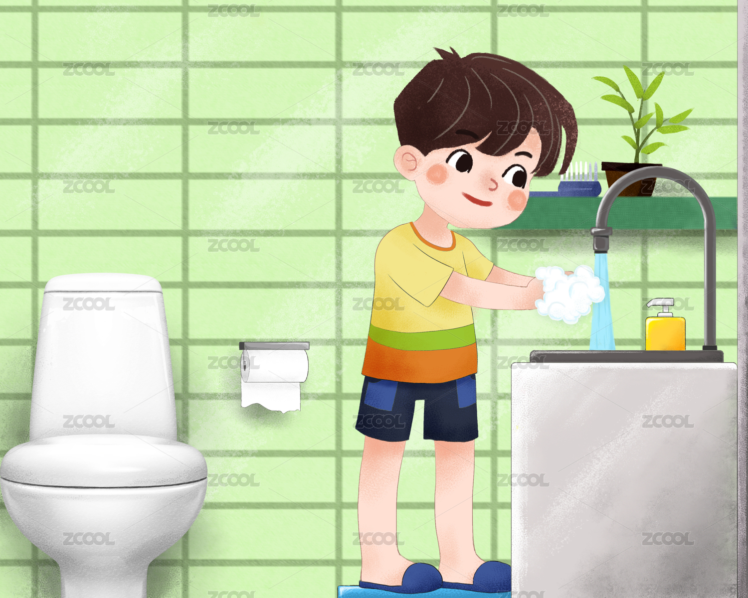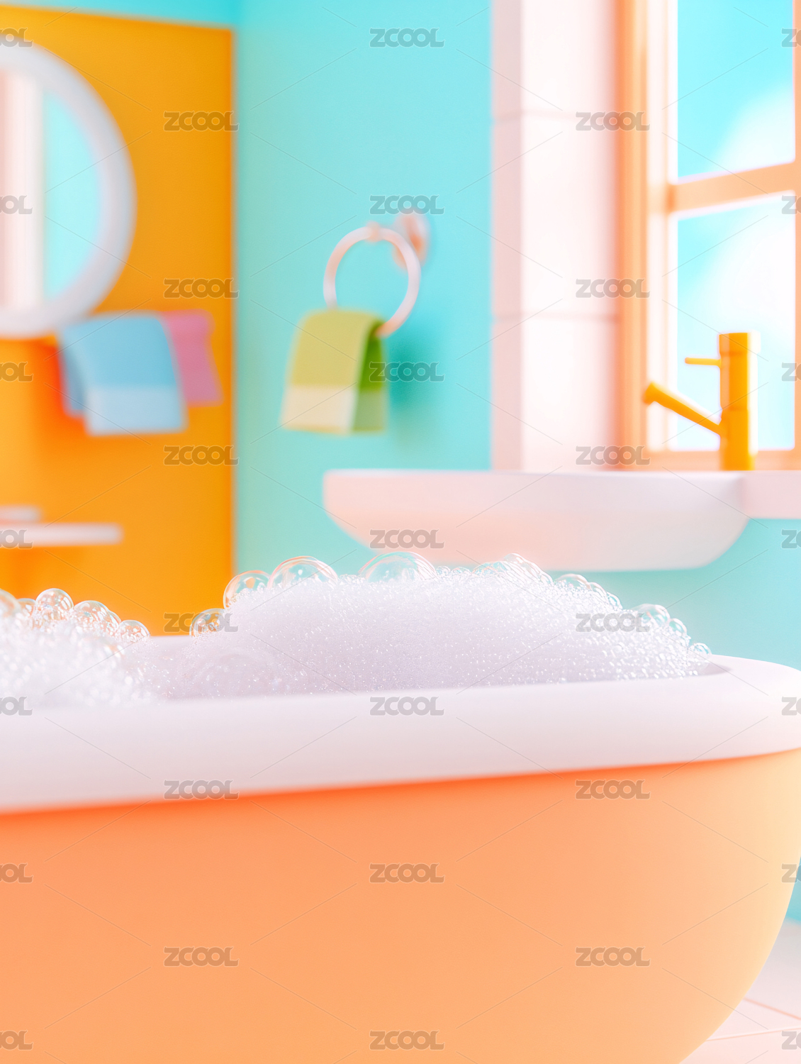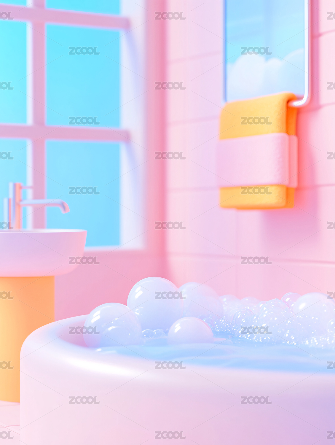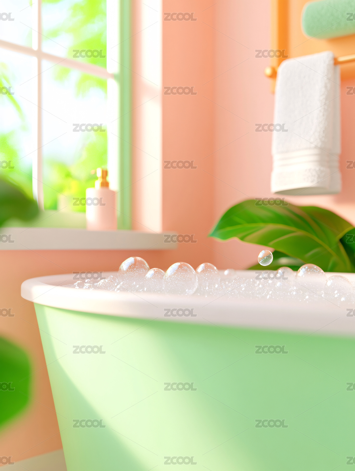 卡通风格的清新浴室3D插画