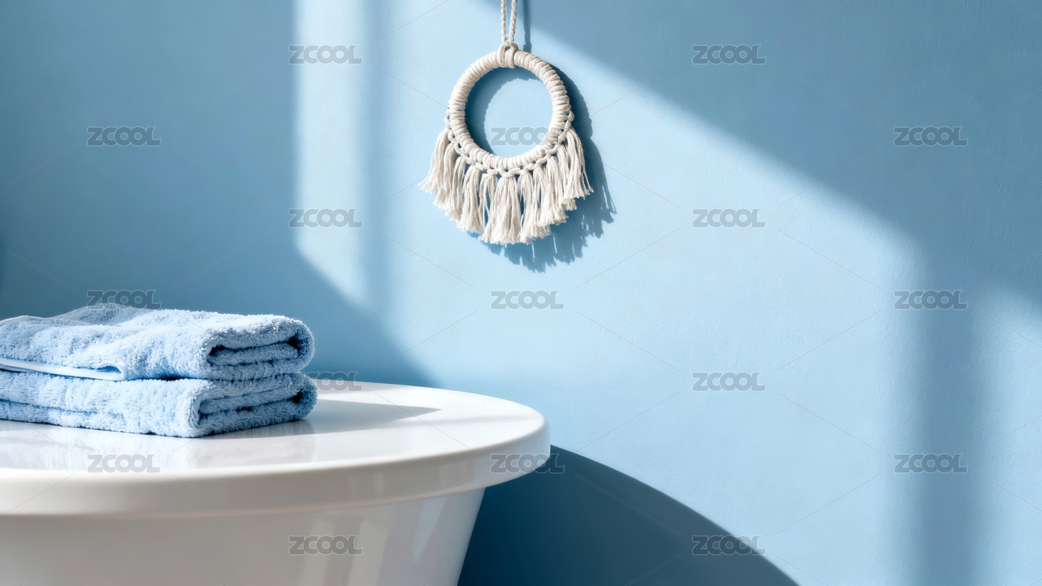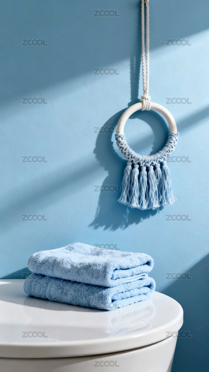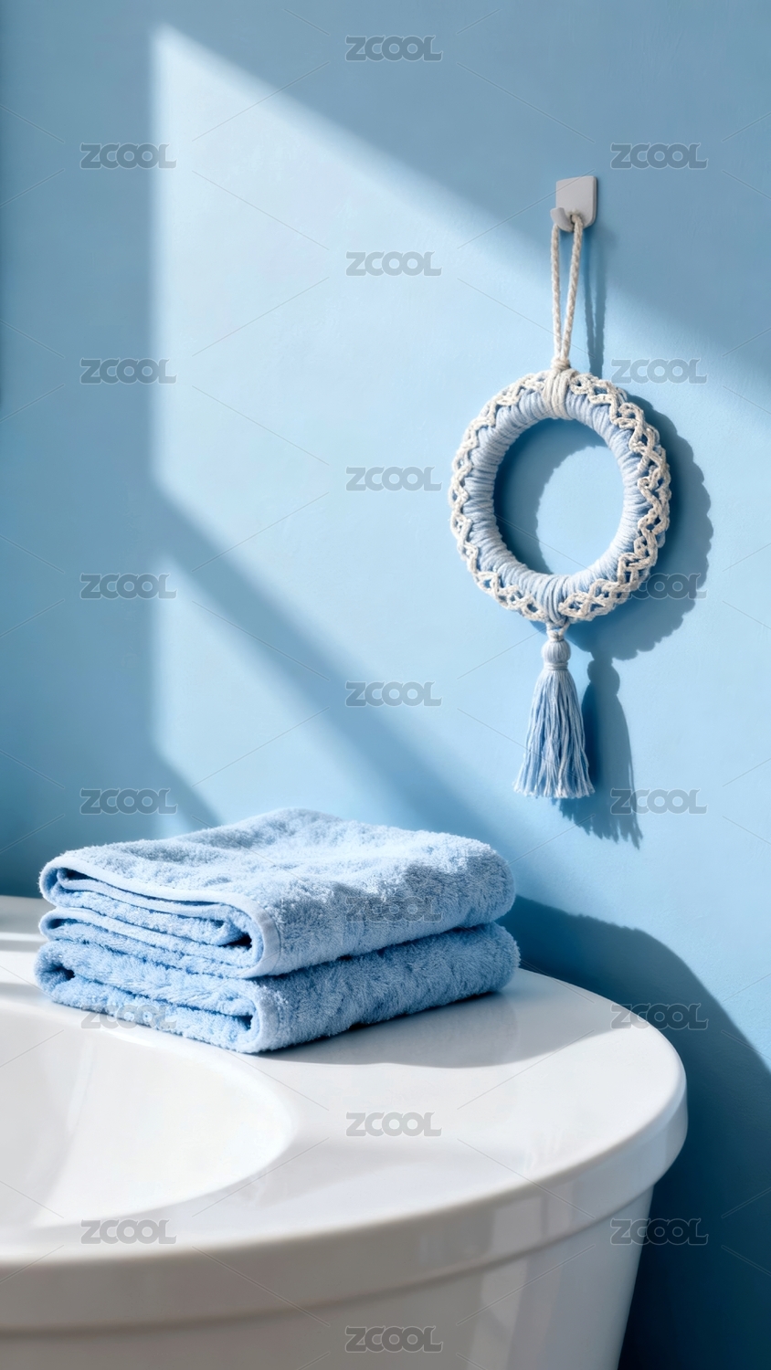 蓝色毛巾清新浴室场景