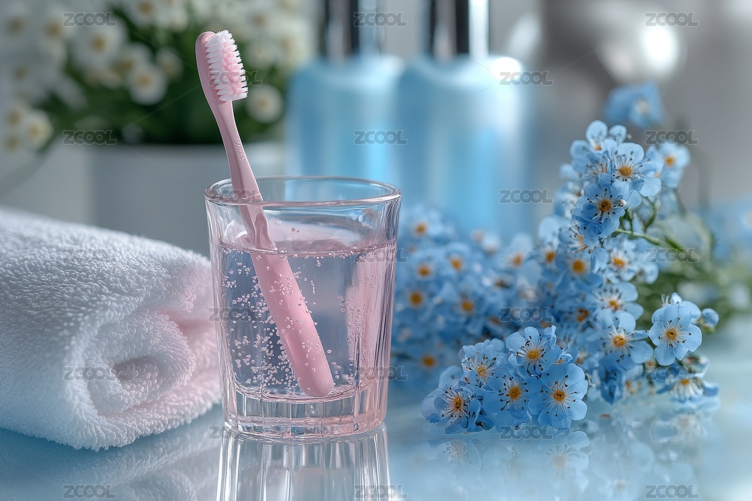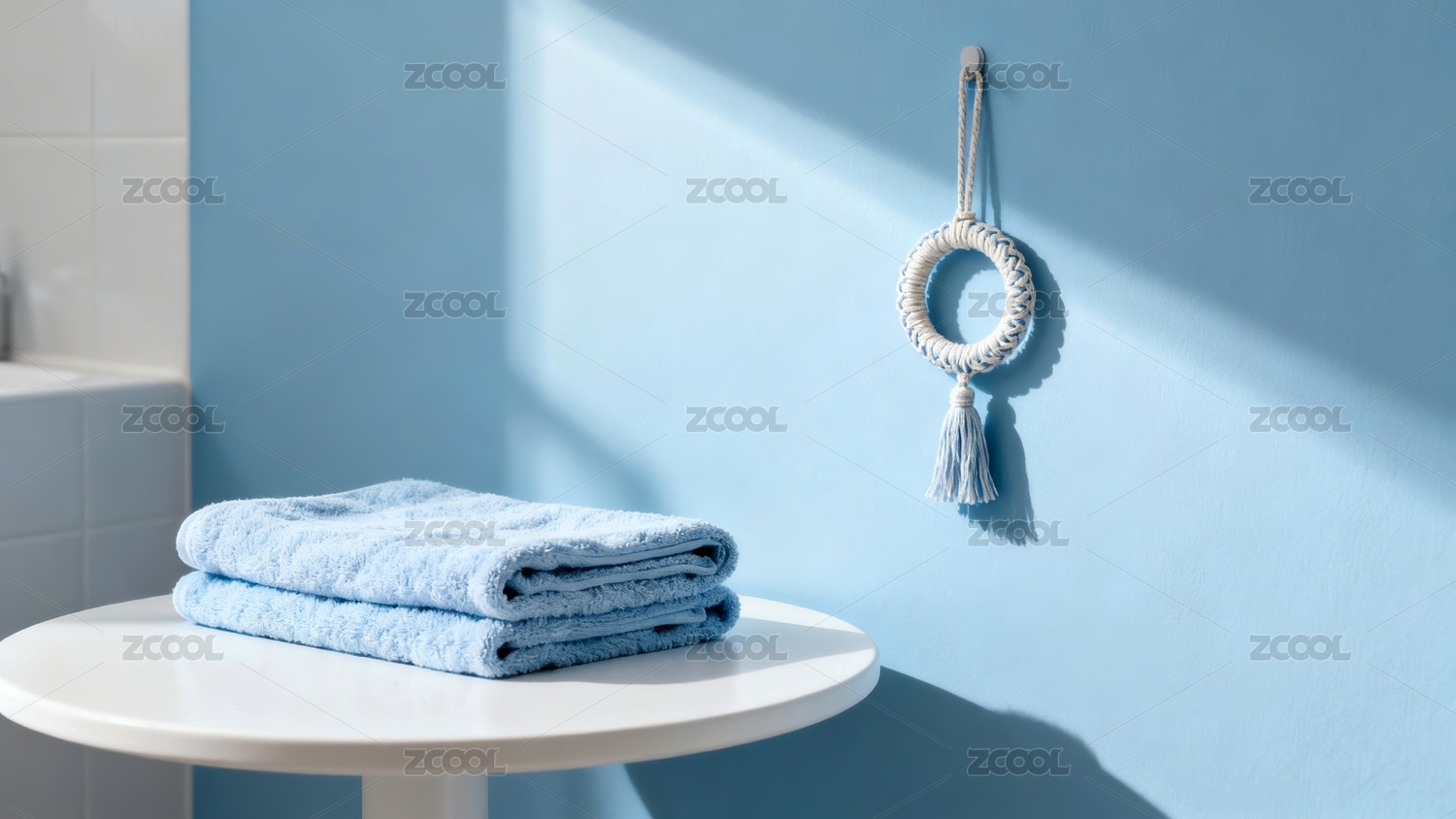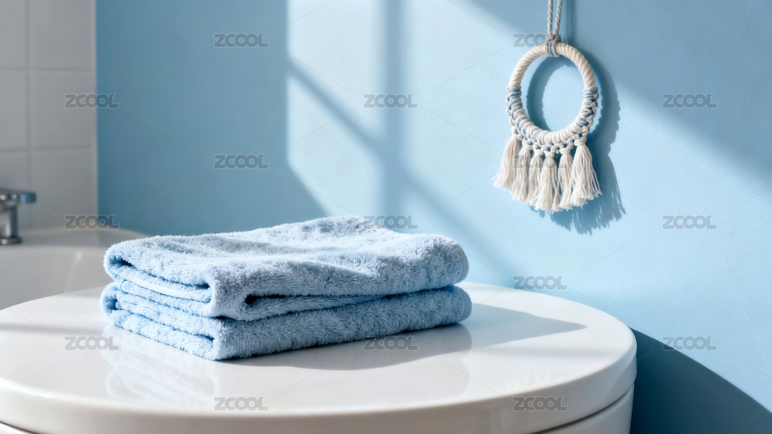 蓝色毛巾清新浴室场景