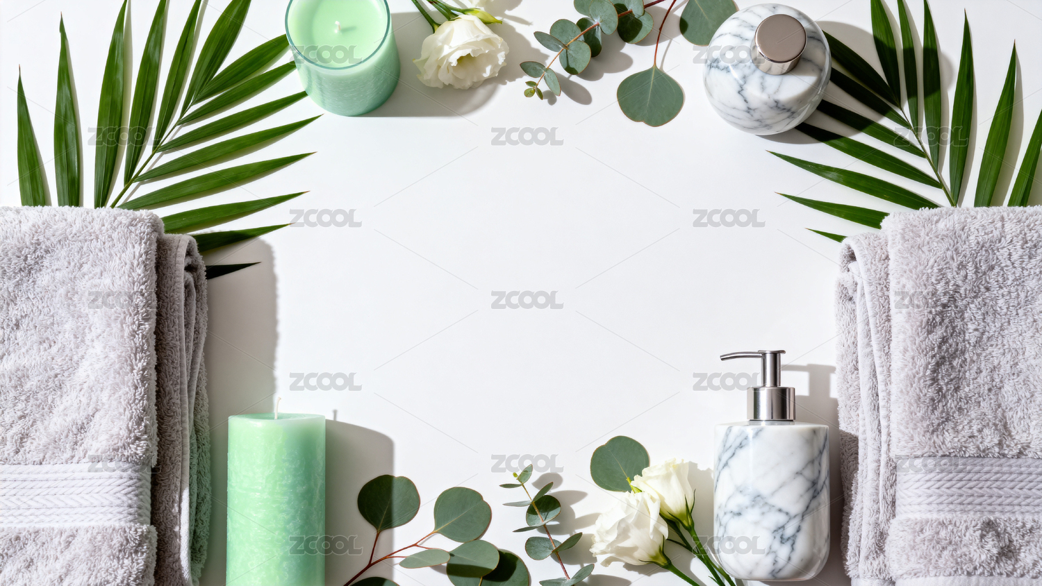 清新浴室中的烛光与毛巾浴盐
