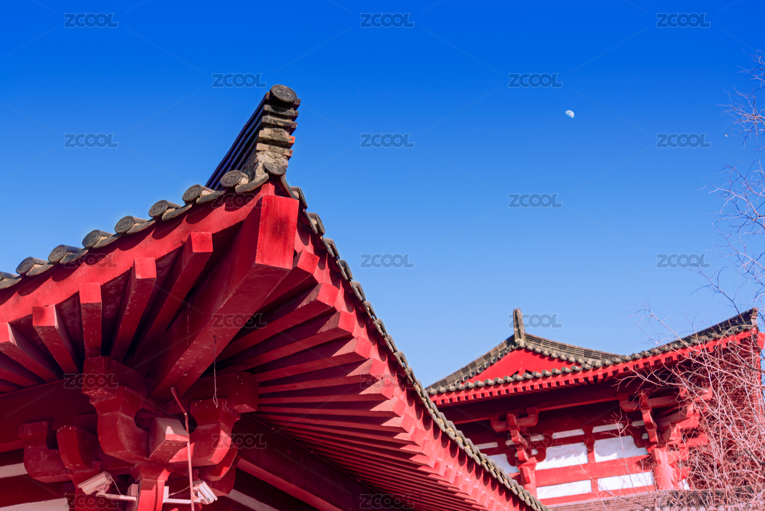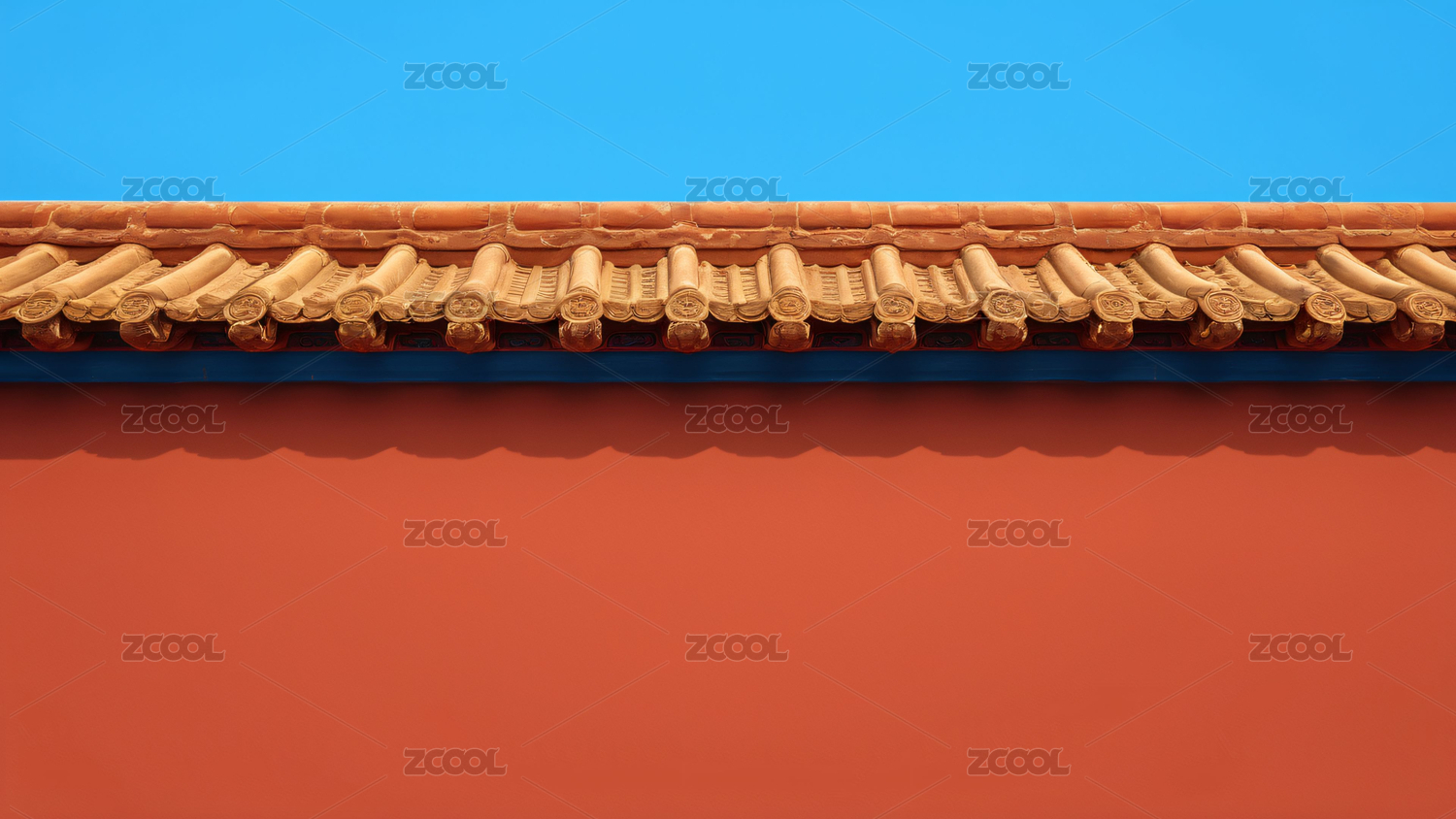 暗红色屋檐、墙壁构建的中国风纹理背景.