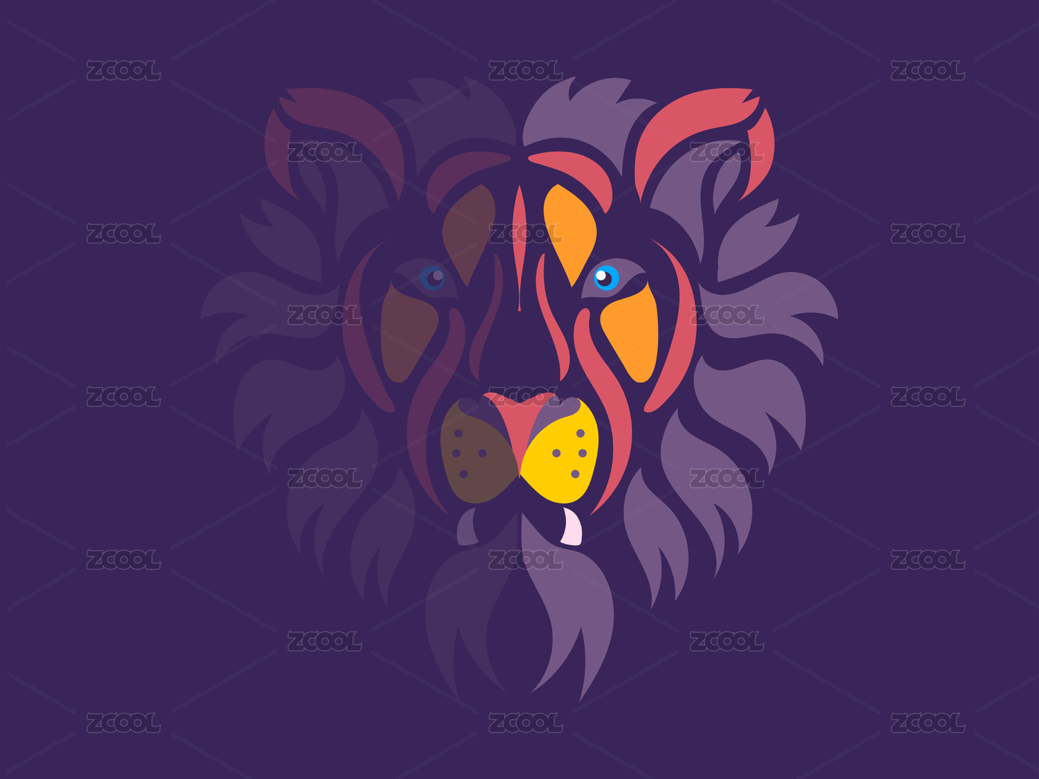抽象图形化logo设计狮子头动物插画海报