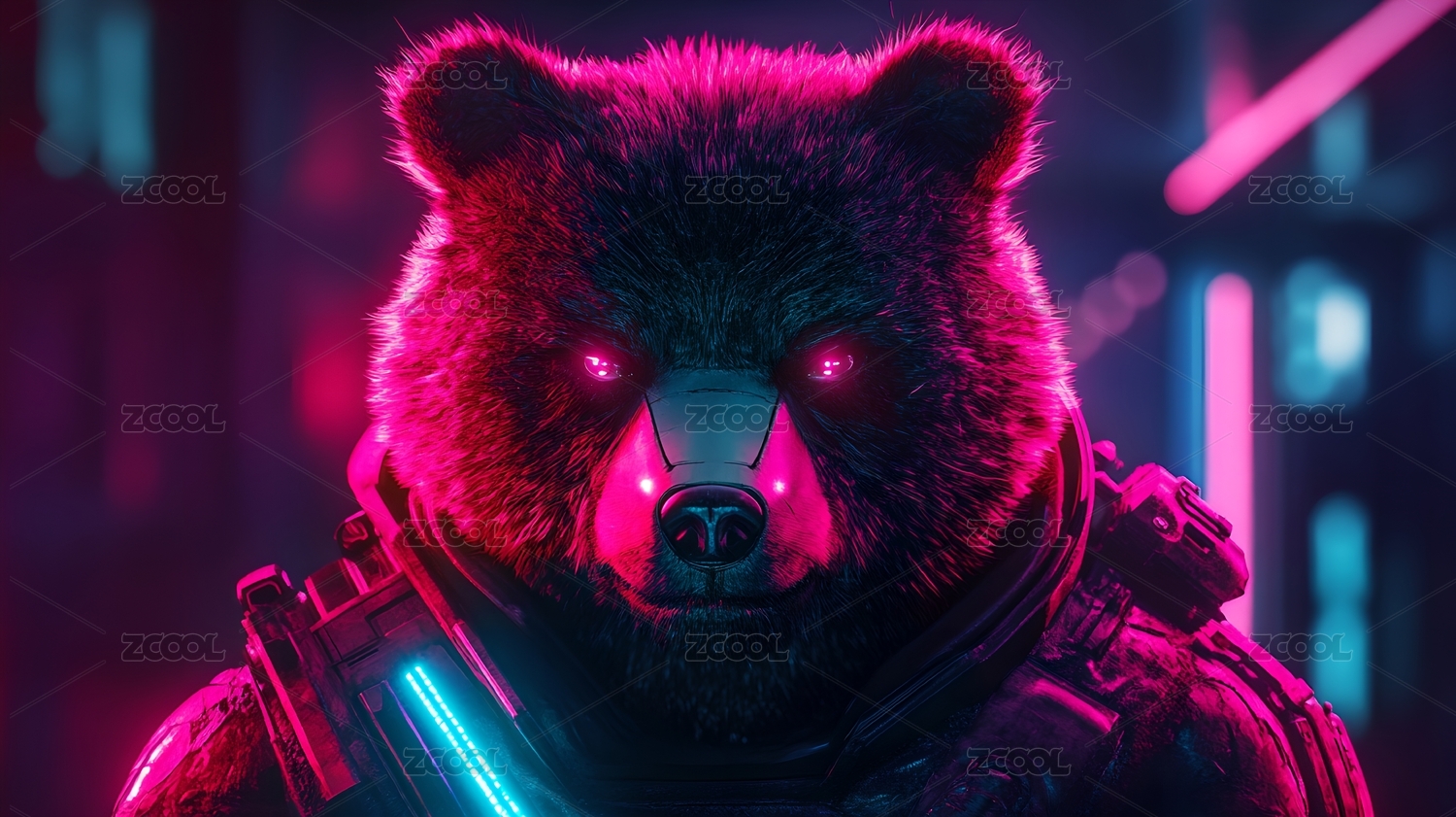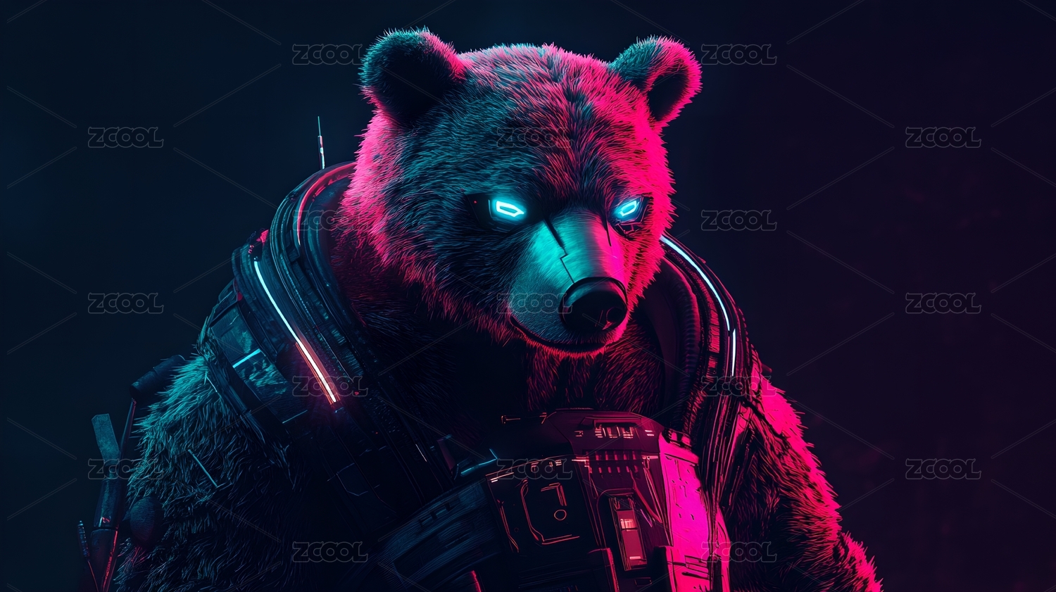 赛博朋克动物狗熊发光未来科技科幻虚构