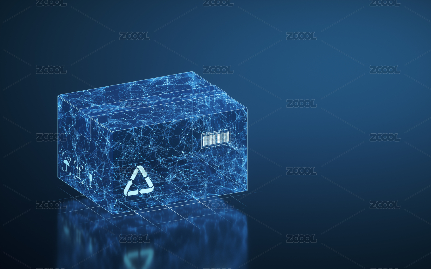 包装箱与虚拟线条结构 3D渲染