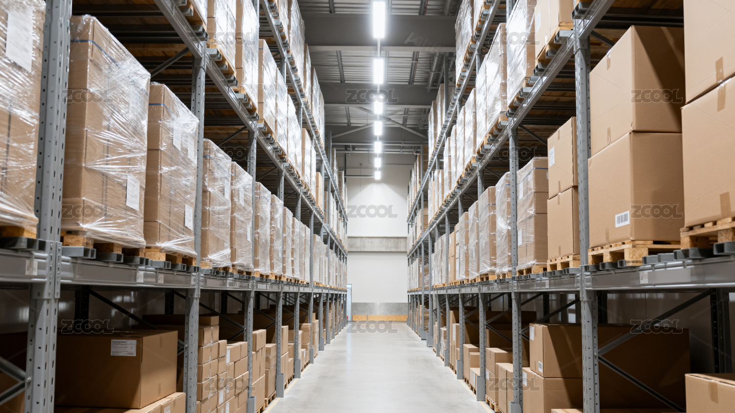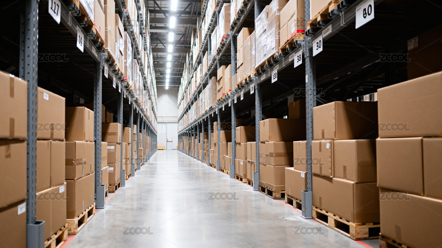 仓库货架堆满纸箱